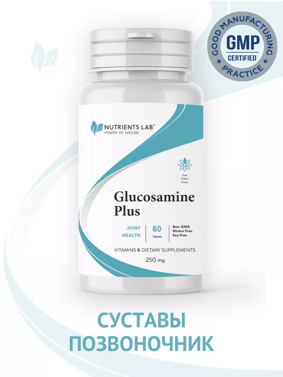 Nutrients Lab БАД "Глюкозамин плас" для суставов, позвоночника, 60 капс