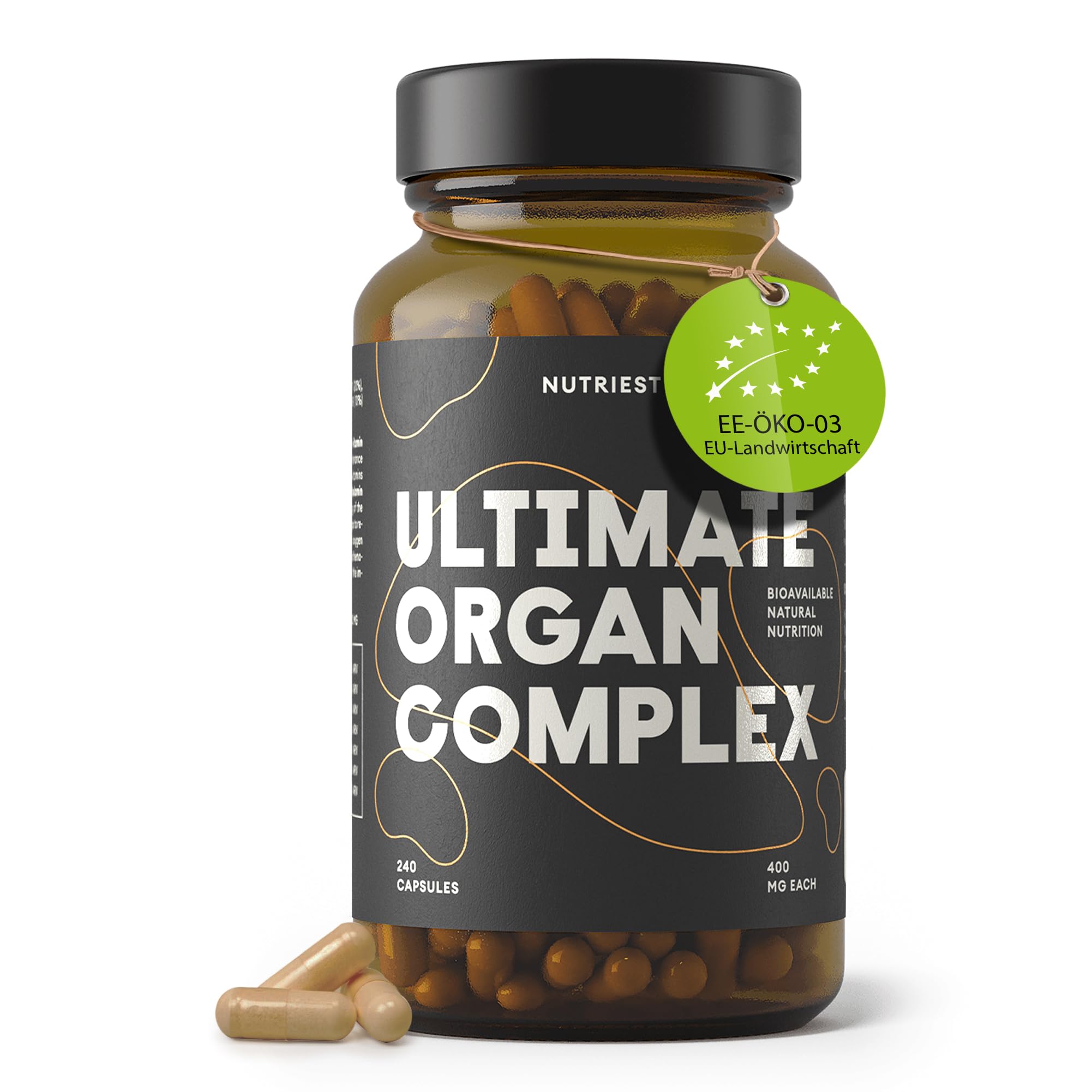 Experience the power of real food – just as nature intended. The Nutriest Grass-Fed Desiccated Beef Ultimate Organ Complex is inspired by traditional knowledge and delivers six essential freeze-dried organs from organic beef: liver, kidney, heart, pancreas, spleen, and lung. The animals come from 100 grass-fed farms on EU-certified organic farms (EE-ÖKO-03) – for a natural, nutrient-rich supplement to support your overall health. Rich in bioavailable vitamins and minerals such as vitamin B1, vitamin B2, vitamin B3, vitamin B12, iron, and copper. The highly bioavailable formula helps address common nutrient deficiencies and supports key aspects of your health—including energy, immune system function, metabolism, mood, hormone balance, and methylation—naturally and without stimulants. Each organ is gently freeze-dried to preserve delicate nutrients, enzymes, and cofactors, then encapsulated in flavorless bovine gelatin capsules for maximum effectiveness and convenience. No taste. No preparation. No artificial additives. Just the natural power of the organs you can rely on—no compromises. Ideal for those following a Paleo, Keto, Carnivore, or whole-food diet. This vitamin complex offers a simple way to rediscover the nutrition of our ancestors and give your body exactly what it needs. INGREDIENTS Organic beef liver (40 ), organic kidney (20 ), organic heart (10 ), organic pancreas (10 ), organic spleen (10 ), organic lung (10 ) Experience the power of real food – just as nature intended. The Nutriest Grass-Fed Desiccated Beef Ultimate Organ Complex is inspired by traditional knowledge and delivers six essential freeze-dried organs from organic beef: liver, kidney, heart, pancreas, spleen, and lung. The animals come from 100 grass-fed farms on EU-certified organic farms (EE-ÖKO-03) – for a natural, nutrient-rich supplement to support your overall health. Rich in bioavailable vitamins and minerals such as vitamin B1, vitamin B2, vitamin B3, vitamin B12, iron, and copper. The highly bioavailable formula helps address common nutrient deficiencies and supports key aspects of your health—including energy, immune system function, metabolism, mood, hormone balance, and methylation—naturally and without stimulants. Each organ is gently freeze-dried to preserve delicate nutrients, enzymes, and cofactors, then encapsulated in flavorless bovine gelatin capsules for maximum effectiveness and convenience. No taste. No preparation. No artificial additives. Just the natural power of the organs you can rely on—no compromises. Ideal for those following a Paleo, Keto, Carnivore, or whole-food diet. This vitamin complex offers a simple way to rediscover the nutrition of our ancestors and give your body exactly what it needs. INGREDIENTS Organic beef liver (40 ), organic kidney (20 ), organic heart (10 ), organic pancreas (10 ), organic spleen (10 ), organic lung (10 )Nutriest Rinderleber Kapseln (240 Stück) – 6-in-1 Beef Organs Supplement I Bio-Weiderind aus Europa I 100 Weidehaltung I Für Energie, Immunsystem Vitalität I Reich an Vitaminen MineralienDESCRIPTION DU PRODUIT DESCRIPTION DU PRODUIT Erleben Sie die Kraft echter Nahrung – so, wie es die Natur vorgesehen hat. Der Nutriest Grass Fed Desiccated Beef Ultimate Organ Complex ist inspiriert von traditionellem Wissen und liefert sechs essentielle, gefriergetrocknete Organe aus Bio-Rind: Leber, Niere, Herz, Bauchspeicheldrüse, Milz und Lunge. Die Tiere stammen aus 100 grasgefütterter Haltung auf EU-zertifizierten Bio-Höfen (EE-ÖKO-03) – für ein natürliches, nährstoffreiches Nahrungsergänzungsmittel zur Unterstützung Ihrer ganzheitlichen Gesundheit. Reich an bioverfügbaren Vitaminen und Mineralstoffen wie Vitamin B1, Vitamin B2, Vitamin B3, Vitamin B12, Eisen und Kupfer. Die hoch bioverfügbare Formel hilft, häufige Nährstoffdefizite auszugleichen und unterstützt zentrale Bereiche Ihrer Gesundheit – darunter Energie, Immunsystem, Stoffwechsel, Stimmung, Hormonbalance und Methylierung – ganz natürlich und ohne stimulierende Substanzen. Jedes Organ wird schonend gefriergetrocknet, um empfindliche Nährstoffe, Enzyme und Cofaktoren zu bewahren, und anschließend in geschmacksneutrale Rindergelatine-Kapseln abgefüllt – für maximale Wirkung bei höchstem Komfort. Kein Geschmack. Keine Zubereitung. Keine künstlichen Zusatzstoffe. Nur die natürliche Kraft der Organe, auf die Sie sich verlassen können – ohne Kompromisse. Ideal für alle, die eine Paleo- Keto-, Carnivore- oder vollwertige Ernährung verfolgen. Dieses Vitamin Komplex bietet Ihnen eine einfache Möglichkeit, die Ernährung unserer Vorfahren wiederzuentdecken und Ihrem Körper genau das zu geben, was er wirklich braucht. INGRÉDIENTS Bio-Rinderleber (40 ), Bio-Niere (20 ), Bio-Herz (10 ), Bio-Bauchspeicheldrüse (10 ), Bio-Milz (10 ), Bio-Lunge (10 )? GEFRIERTGETROCKNET PRAKTISCH: Durch Gefriertrocknung bleiben empfindliche Vitamine, Enzyme und Cofaktoren deutlich besser erhalten als bei hitzebasierten Verfahren. Der geschmacksneutrale Vitaminkomplex wird in Rindergelatine-Kapseln abgefüllt – so erhalten Sie alle Nährstoffe aus hochwertigen Organen, ganz ohne Zubereitung oder Eigengeschmack. NATÜRLICH BIO: Hergestellt aus europäischen Weiderindern – zu 100 grasgefüttert und auf Bio-zertifiziertem Land gehalten. EU-Bio-zertifiziert (EE-ÖKO-03) und frei von Gentechnik, Antibiotika, Füllstoffen, Fließmitteln und Schwermetallen – für eine reine, sichere und nährstoffreiche Nahrungsergänzung. GANZHEITLICHE GESUNDHEIT: Unterstützt auf natürliche Weise die Immunabwehr, Energieproduktion, den Hormonhaushalt, die Stimmung und eine gesunde Methylierung. Vitamin A (Retinol) trägt zur normalen Sehkraft und zum Eisenstoffwechsel bei, während Vitamin B12 die Funktion des Nervensystems unterstützt und zur Verringerung von Müdigkeit beiträgt – natürliche Unterstützung bei Müdigkeit, Stress und Nährstofflücken. NÄHRSTOFFREICH: Enth