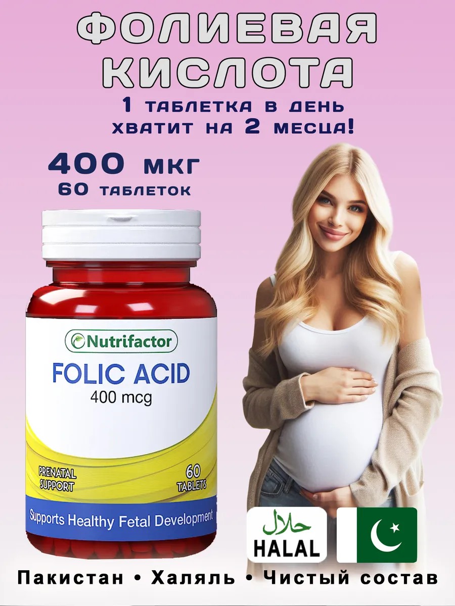 Nutrifactor Фолиевая кислота 400 мкг – надежная защита здоровья будущей мамы и правильного развития малыша!