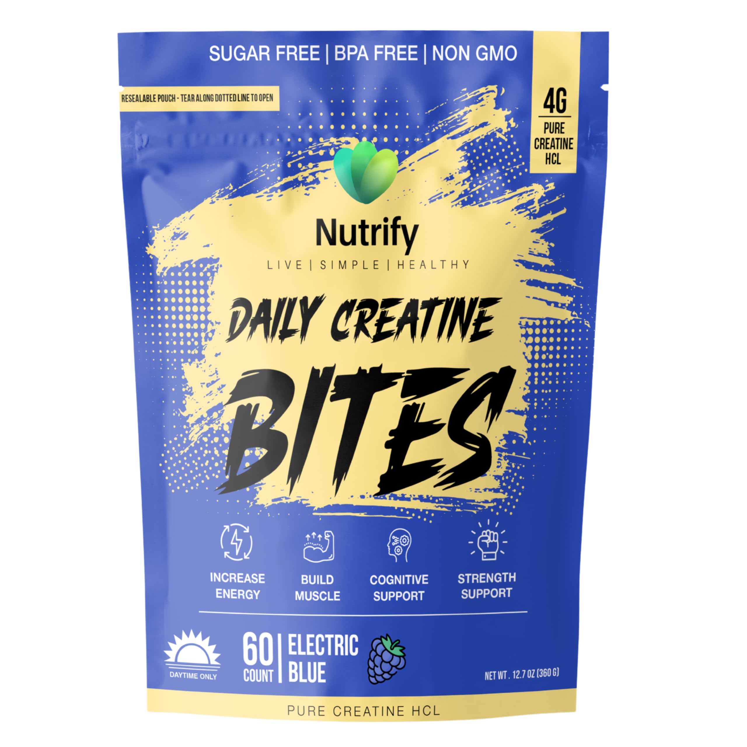 Nutrify Daily Creatine Gummies for Women and Men - 4g Creatine Monohydrate per Serving for Muscle Growth & Recovery -Sugar Free Low-Calorie with Vitamin B12 for Energy Boost 60 Count - Electric Blue