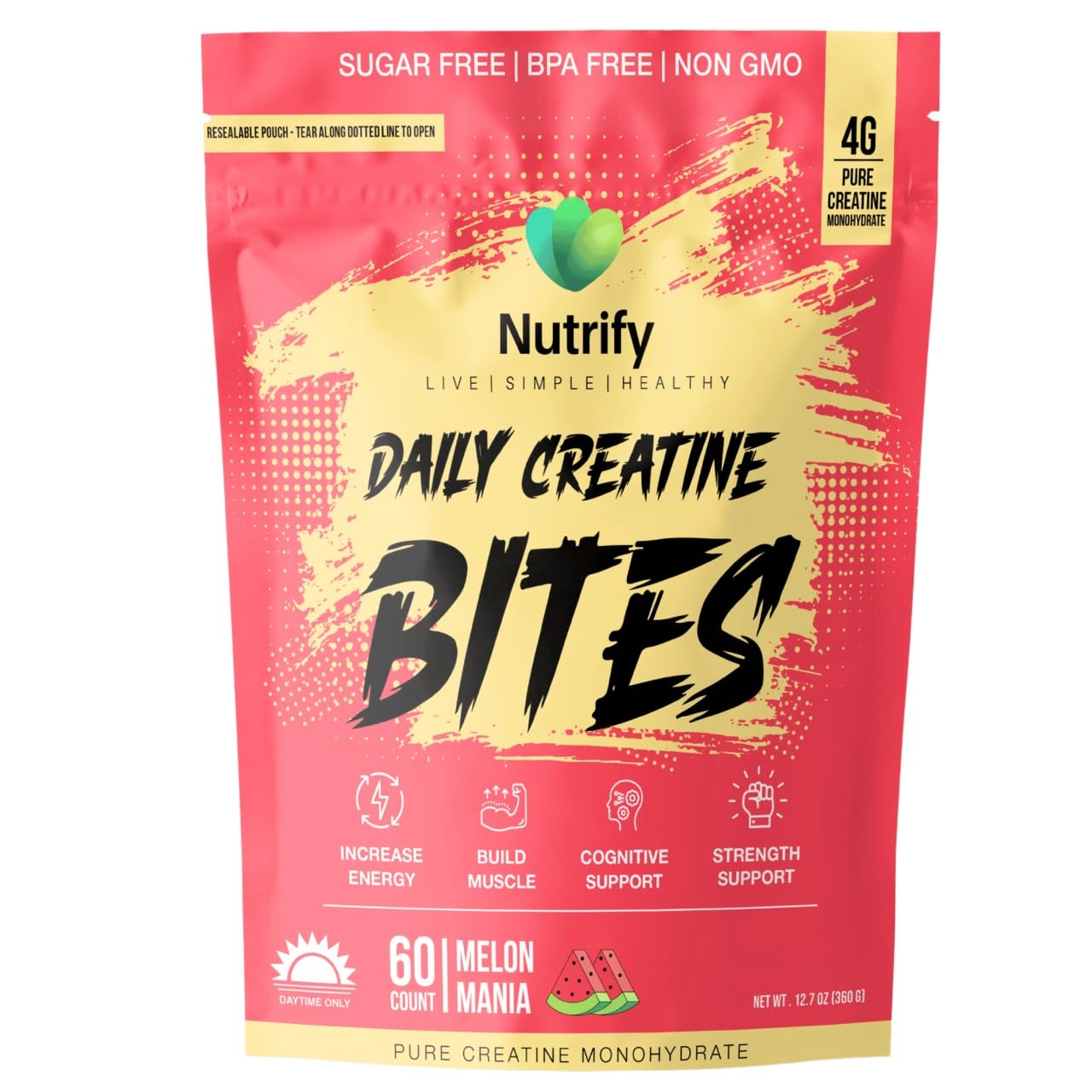 Nutrify Daily Creatine Gummies for Women and Men - 4g Creatine Monohydrate per Serving for Muscle Growth & Recovery - Sugar-Free Low-Calorie with Vitamin B12 for Energy Boost 60 Count - Melon Mania