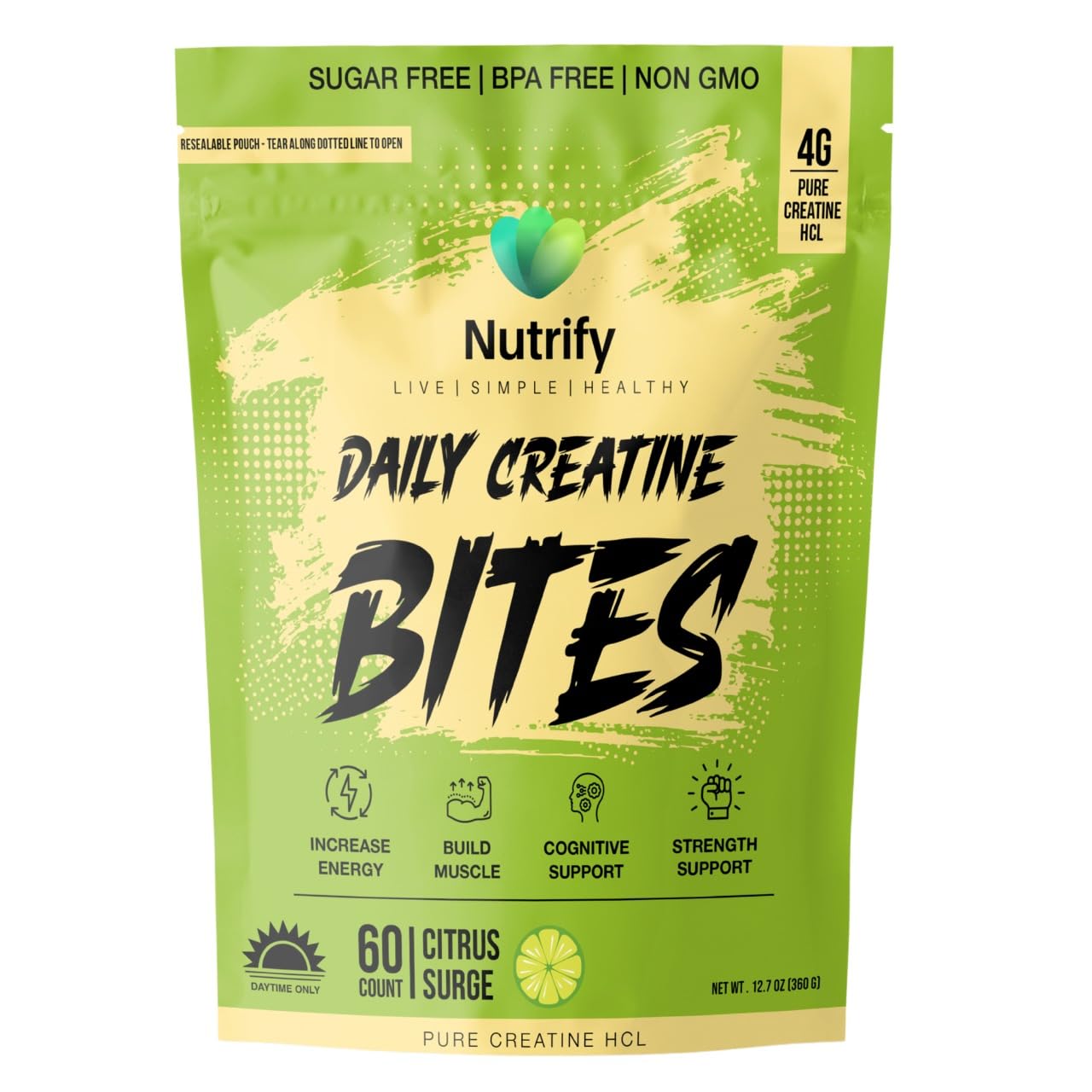 Nutrify Daily Creatine Gummies for Women and Men - 4g Creatine Monohydrate per Serving for Muscle Growth & Recovery - Sugar-Free Low-Calorie with Vitamin B12 for Energy Boost - Citrus Surge