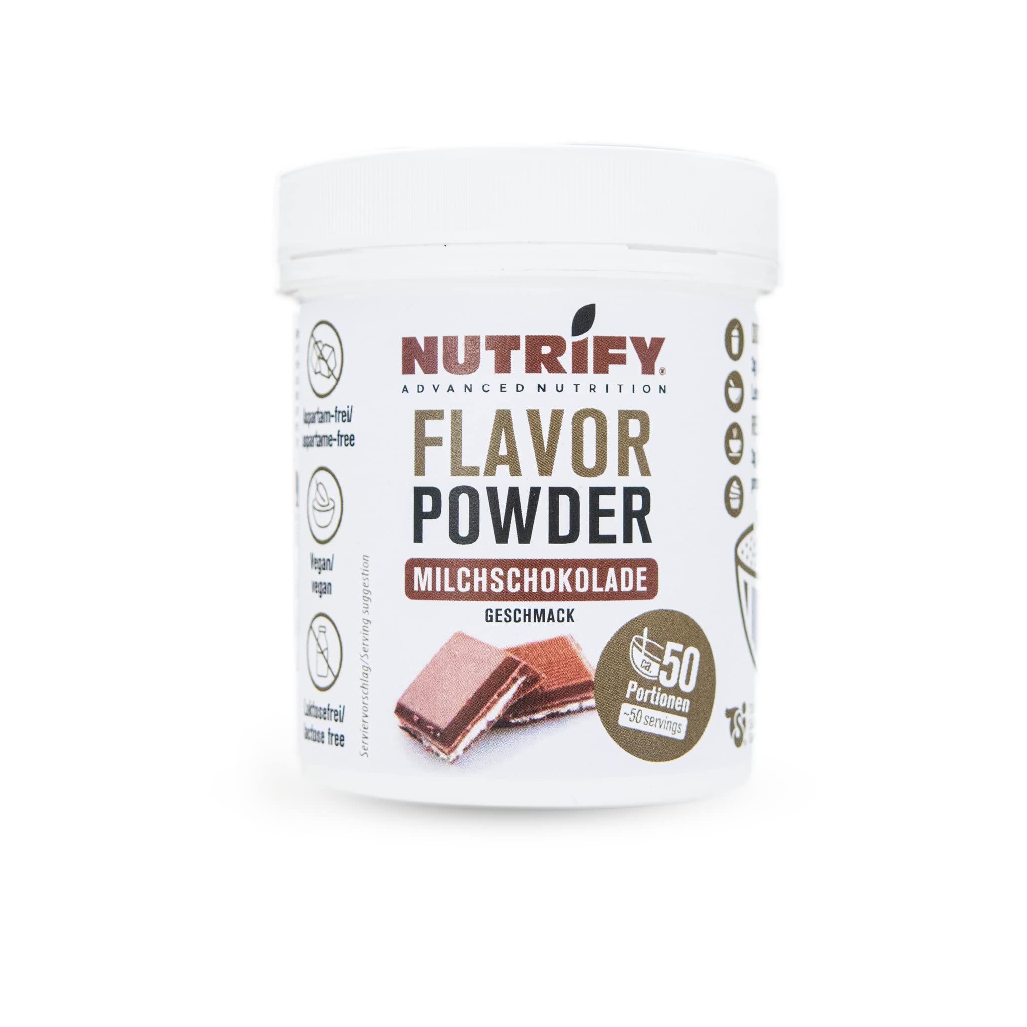 NUTRIFY Advanced Nutrition Milk Chocolate Flavor Powder 150 g en poudre aromatique au chocolat au lait et 7,5 kcal par portion, végétalien, sans lactose, sans gluten