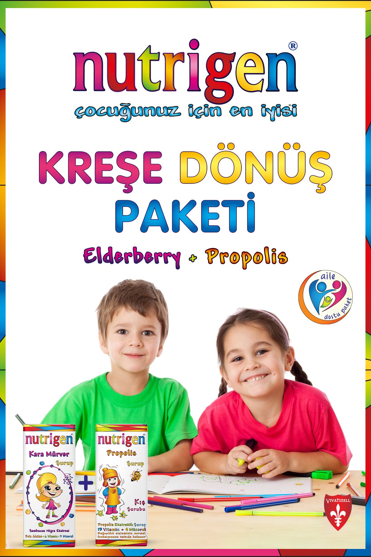NUTRIGEN ELDERBERRY KARA MÜRVER BETA GLUKAN Bal ile zenginlestirilmis özel formül. Kara mürver ekstresi, beta glukan (1,3 1,6), vitamin ve mineral içeren takviye edici gida. Tatlandirici, Renklendirici, Koruyucu Içermez ADI Her 10 mL Içerisinde BRD Her 15 mL Içerisinde BRD Kara Mürver (Sambucus nigra) Meyve Ekstresi 200 mg 300 mg Beta Glukan (1,3 1,6) 100 mg 150 mg Vitamin C 200 mg 250 300 mg 375 Vitamin D 5 µg (200 IU) 100 7,5 µg (300 IU) 150 Vitamin B12 5 µg 200 7,5 µg 300 Folik Asit 100 µg 50 150 µg 75 Vitamin B6 1 mg 71 1,5 mg 107 Vitamin A 200 µg RE 25 300 µg RE 37,5 Selenyum 30 µg 54 45 µg 82 Çinko 5 mg 50 7,5 mg 75 Bakir 500 µg 50 750 µg 75 Önerilen Kullanim Sekli: Çocuklarin günde 10 – 15 mL (2×5 mL - 3×5 mL) kullanmasi önerilir. Nutrigen Propolis Surup 200 ml Bagisikliga Tam Destek Nutrigen Propolis içerisinde bulunan vitamin A, vitamin B6, vitamin C, vitamin D, folik asit, bakir, çinko, selenyum bagisiklik sisteminin normal fonksiyonuna katkida bulunur. Propolis Arilarin dogadan topladigi özleri kullanarak yaptiklari saglik için faydali dogal bir maddedir. Çocuklar için 10 mL gün kullanimi önerilir.