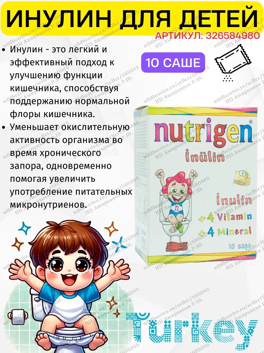 Этот продукт представляет собой саше (пакетик) с полезными витаминами и минералами, предназначенный для детей от 4 лет. В составе содержится инулин – натуральный пребиотик, а также важные витамины и микроэлементы, поддерживающие здоровье ребенка.