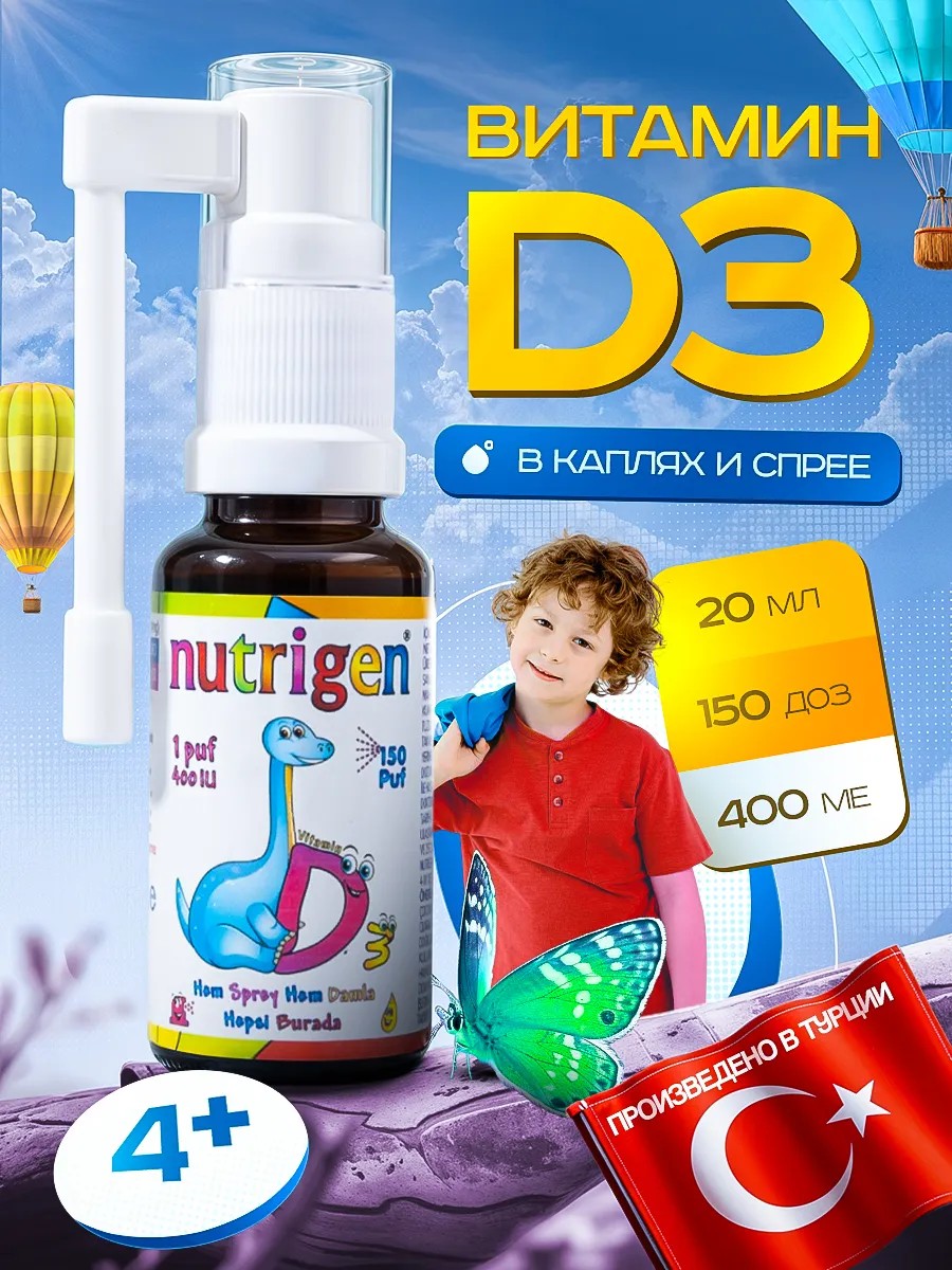 Витамин Д3 в форме спрея и капель от турецкого бренда Nutrigen эффективное средство для поддержки здоровья. Этот продукт идеально подходит для детей от 4 лет и содержит 400 МЕ витамина D в каждом пшике. Для удобства использования один пшик эквивалентен 4 каплям, что делает его идеальным выбором для активных детей. Он играет ключевую роль в поддержании здоровья костей и зубов, профилактика рахита, повышает уровень энергии, а также способствует нормальному функционированию иммунной системы. Детский спрей легко дозируется и быстро усваивается, что позволяет вашему ребенку получать необходимые витамины без лишних усилий. Участвует в усвоении кальция, что делает его незаменимым элементом в рационе. Регулярное использование может помочь восполнить дефицит у малышей и подростков. Выбирайте d3 от Нутриген — заботьтесь о здоровье вашего ребенка с удовольствием!