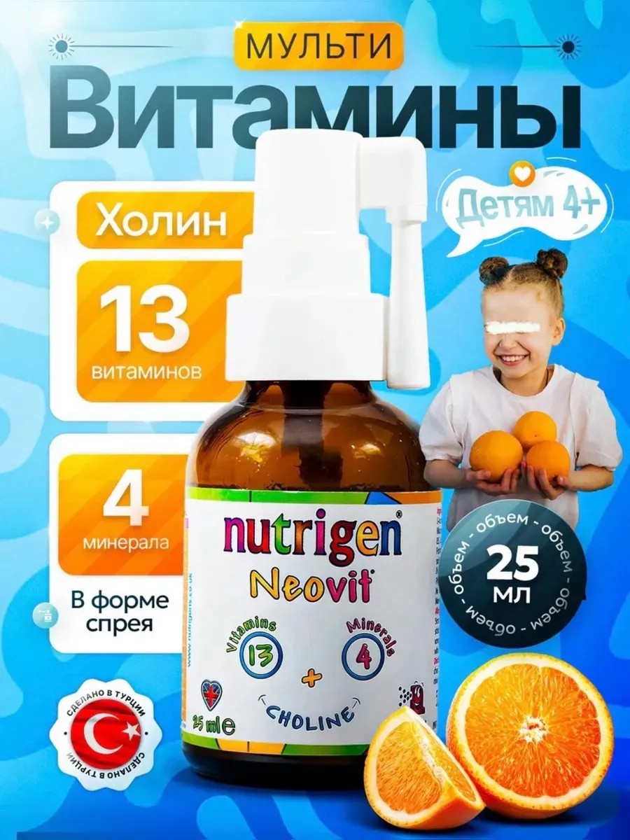 Neovit, a vitamin and mineral complex with choline from the Turkish brand Nutrigen, is designed to support children's health. It includes choline, 13 vitamins, and 4 minerals, helping to strengthen the immune system and maintain overall health. Choline plays a vital role in brain development and nervous system function, which is especially important for children during growth. It helps improve memory and concentration, creating the conditions for successful learning and exploration of the world around them.