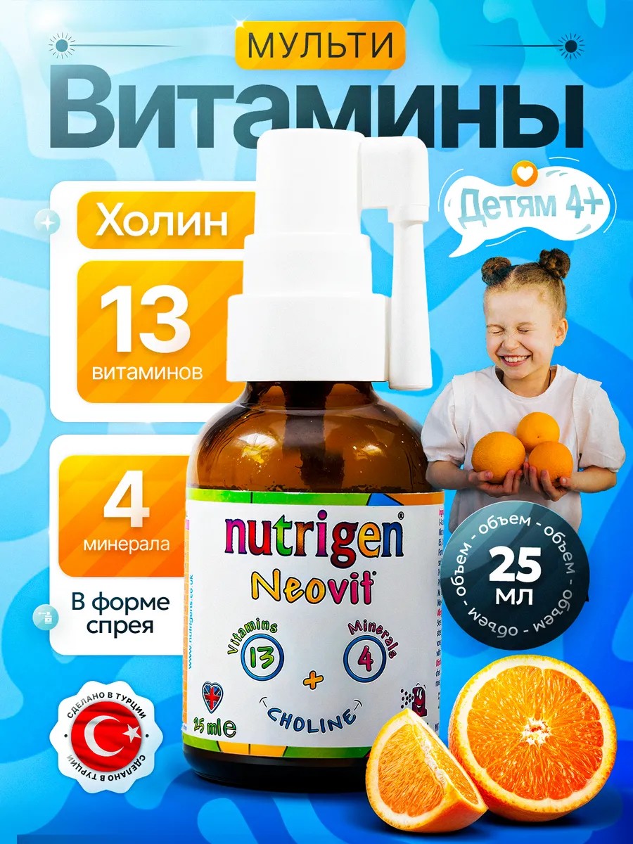 Neovit, a vitamin and mineral complex with choline from the Turkish brand Nutrigen, is designed to support children's health. It includes choline, 13 vitamins, and 4 minerals, helping to strengthen the immune system and maintain overall health. Choline plays a vital role in brain development and nervous system function, which is especially important for children during growth. It helps improve memory and concentration, creating the conditions for successful learning and exploration of the world around them.