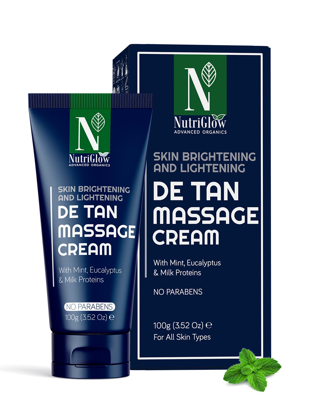 This nutriglow advanced organics de-tan massage cream is a great skin cream that takes away all the dirt and impurities from your skin. it gently nourishes your skin and strengthens your skin barrier. it helps maintain radiant, supple skin with an even skin complexion. this can be used by both men women to get tan-free, glowy, supple skin. this perfect blend of milk protein, eucalyptus, and mint will enhance your beauty from within remove the acne scars, dullness, wrinkles, fine lines, etc. it is free of toxins and harsh chemicals, cruelty-free, and is also manufactured in a strict closed automated environment. to use this de tan massage cream you need to cleanse your face then take a generous amount of this massage cream and spread it all over your face. massage gently using your fingertips till it absorbs entirely. make sure to conduct a patch test before applying the product to your face and avoid contact with your sensitive areas like the eyes and mouth. INGREDIËNTEN De Tan Massage Cream 100mDermatologists test the Nutriglow Advanced Organics De-tan massage cream for the use of all skin types, men and women, to get rid of dullness and tanning. All these rich elements possess the power to improve the skin texture, reduce dullness and remove tanning to reveal the naturally radiant skin. A De-tan massage cream loaded with the goodness of mint that has coolant properties to relieve your skin from excessive heat and tan. All the contents in this exclusive pack are free of parabens, harmful chemicals, toxins, cruelty-free, and are made of 100 safe and tested components. This face mask treats your skin with the goodness of traditional ingredients like eucalyptus milk proteins to help lessen the wrinkles fine lines on the skin.Nutriglow Advanced Organics De-Tan Massage Cream with Mint, Milk Proteins for Tan-Free Skin Brightened Complexion, 100G This nutriglow advanced organics de-tan massage cream is a great skin cream that takes away all the dirt and impurities from your skin. it gently nourishes your skin and strengthens your skin barrier. it helps maintain radiant, supple skin with an even skin complexion. this can be used by both men women to get tan-free, glowy, supple skin. this perfect blend of milk protein, eucalyptus, and mint will enhance your beauty from within remove the acne scars, dullness, wrinkles, fine lines, etc. it is free of toxins and harsh chemicals, cruelty-free, and is also manufactured in a strict closed automated environment. to use this de tan massage cream you need to cleanse your face then take a generous amount of this massage cream and spread it all over your face. massage gently using your fingertips till it absorbs entirely. make sure to conduct a patch test before applying the product to your face and avoid contact with your sensitive areas like the eyes and mouth. INGREDIËNTEN De Tan Massage Cream 100mDermatologists test the Nutriglow Advanced Organics De-tan massage cream for the use of all skin types, men and women, to get rid of dullness and tanning. All these rich elements possess the power to improve the skin texture, reduce dullness and remove tanning to reveal the naturally radiant skin. A De-tan massage cream loaded with the goodness of mint that has coolant properties to relieve your skin from excessive heat and tan. All the contents in this exclusive pack are free of parabens, harmful chemicals, toxins, cruelty-free, and are made of 100 safe and tested components. This face mask treats your skin with the goodness of traditional ingredients like eucalyptus milk proteins to help lessen the wrinkles fine lines on the skin.