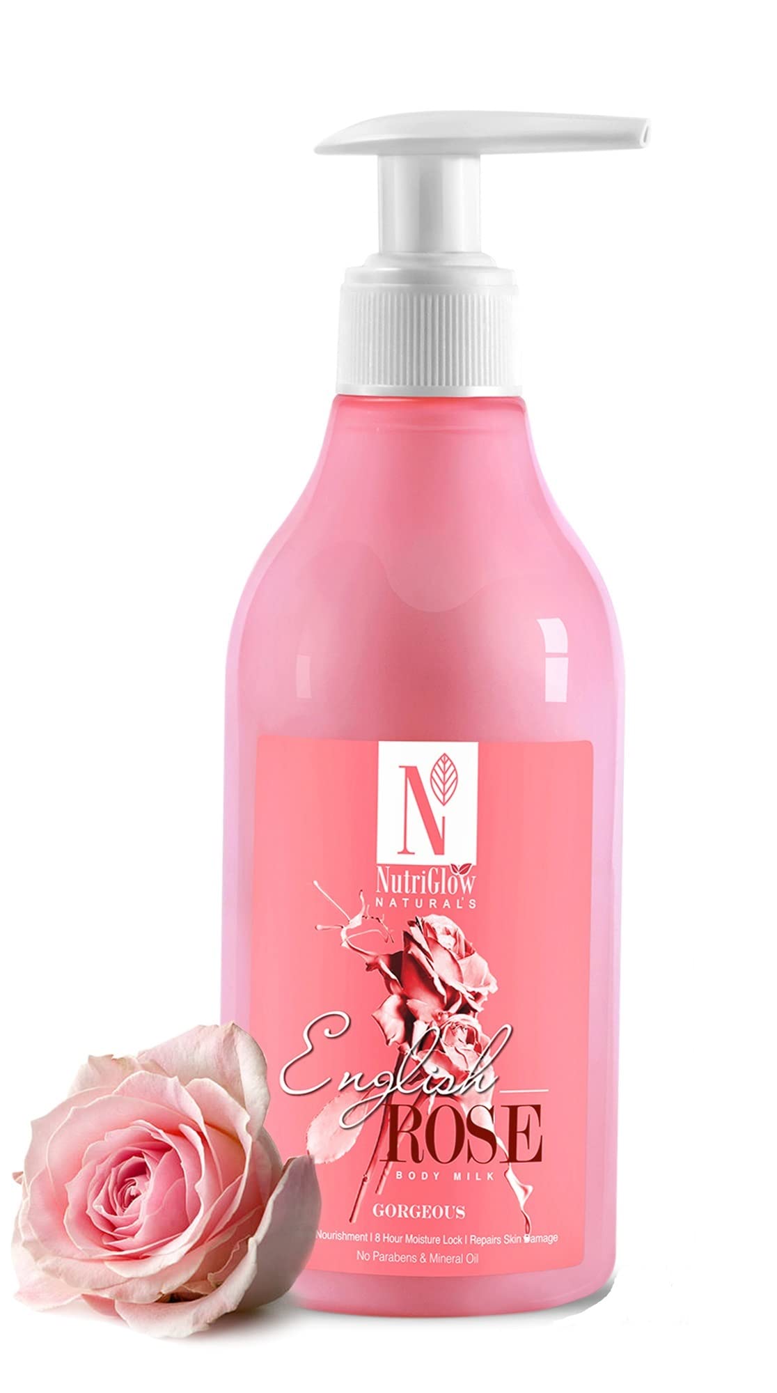 NutriGlow Natural's English Rose Body Milk For Intensive Nourishment Glow & Radiance Up-to 8 Hours Moisture Lock Repair Skin Damage Soothes Skin (5.07 Fl Oz 150 ml)