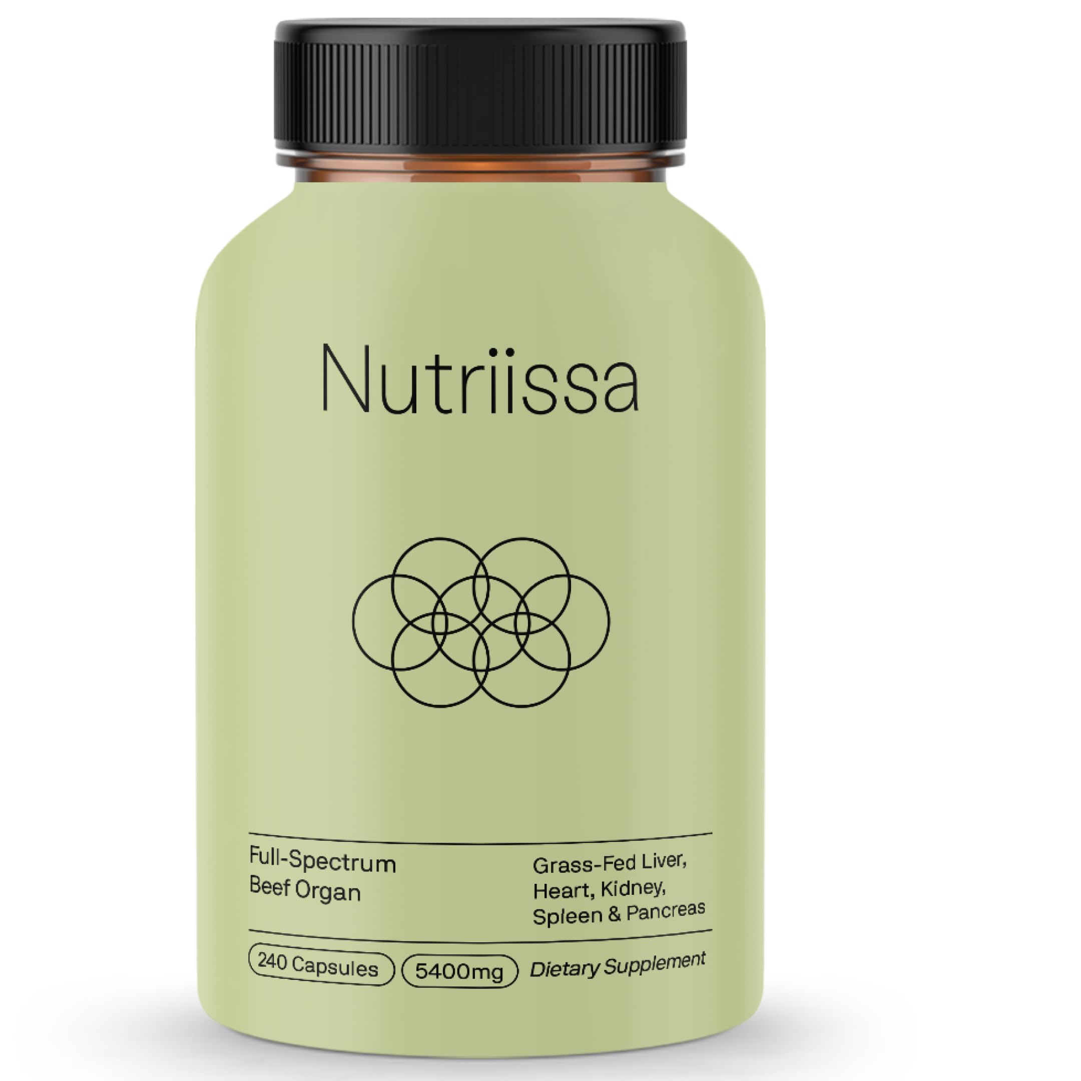 Certified Purity and Potency: Each batch is rigorously tested and includes an EPEB certification, which means every bottle comes with a QR code linking to COAs from ISO 17025 accredited labs, ensuring our high standards of purity and potency are consistently met. Single-Sourced, Grass-Fed from New Zealand: Responsibly sourced from grass-fed cattle in New Zealand, ensuring purity, consistency, and high-quality raw materials without unnecessary fillers or additives. Naturally Occurring Vitamins Minerals: Beef organs are a natural source of bioavailable vitamins, minerals, and cofactors, formulated to support daily nourishment, energy metabolism, and overall vitality. 5,400 mg High-Dose Multi-Organ Formula: Each serving delivers 5,400 mg of beef organs, making it one of the highest-dosed multi-organ complexes available for comprehensive nutritional coverage. Full Spectrum Beef Organ Nutrition: Nutriissa delivers a five-organ blend including liver, heart, kidney, spleen, and pancreas, providing nutrient-dense, whole-food support rooted in ancestral nutrition.