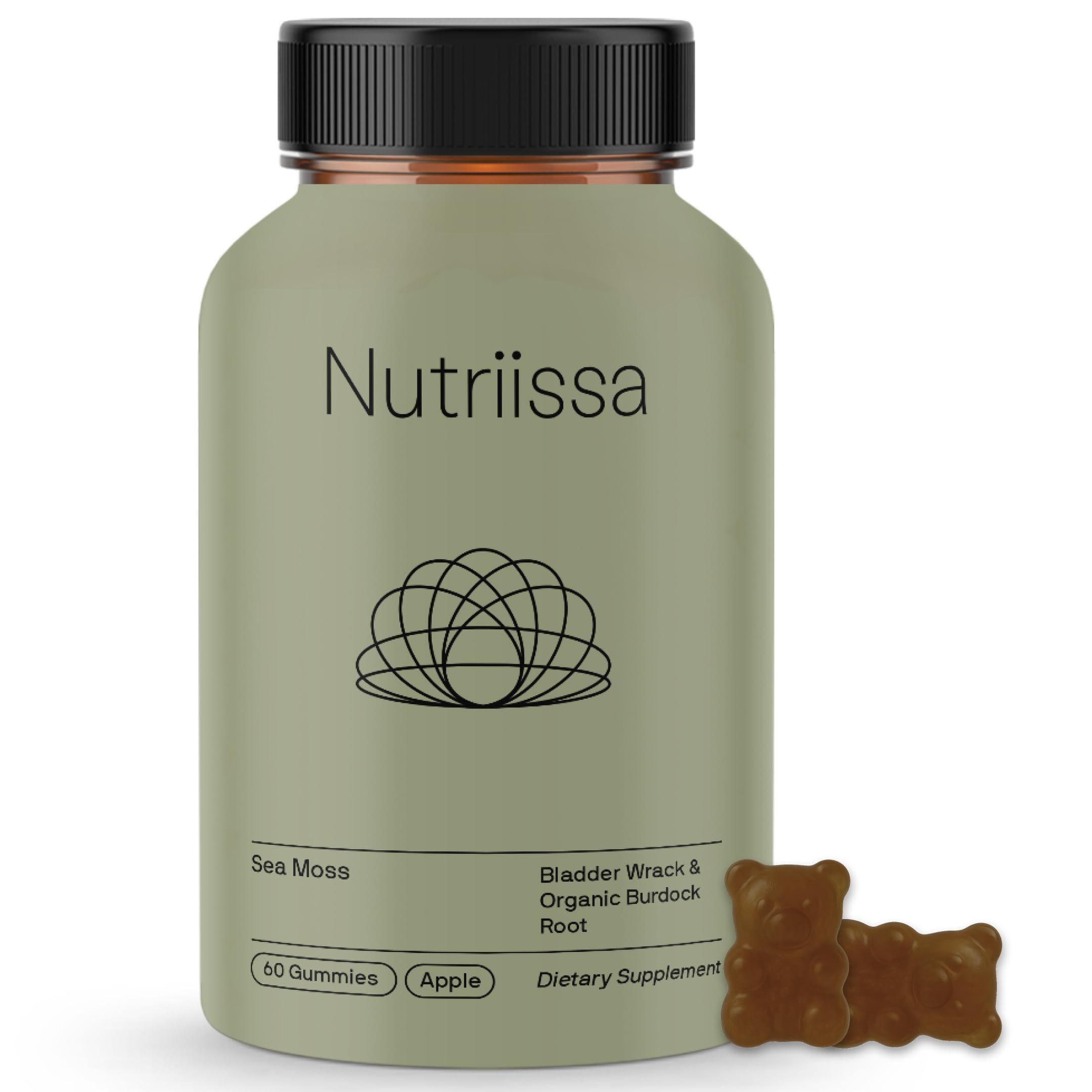 Nutriissa Seamoss Gummies Irish Sea Moss & Bladderwrack Blend for General Wellness EPEB Certified for Purity & Potency 60 Apple Flavored Vegan Gummies 60 Count (Pack of 1)