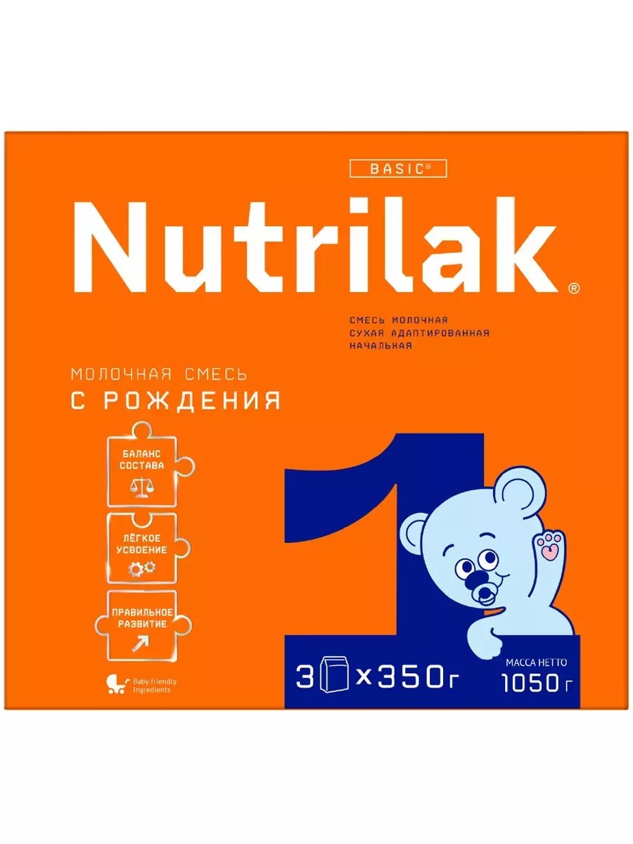 Nutrilak 1 Dry Milk Mixture Adaptir 1050.0. Ingredients: dry demineralized whey, vegetable oils (palm, coconut, soy, high oleic sunflower), maltodextrin, dry skim milk, minerals (potassium citrate, calcium carbonate, calcium phosphate, sodium chloride, magnesium chloride, potassium chloride, ferrous sulfate, zinc sulfate, copper sulfate, manganese chloride, potassium iodide, sodium selenite), vitamin complex (ascorbic acid, tocopherol acetate, nicotinamide, calcium D-pantothenate, riboflavin, retinol acetate, pyridoxine hydrochloride, thiamine hydrochloride, folic acid, phylloquinone, D-biotin, cholecalciferol, cyanocobalamin), emulsifier (soy lecithin), taurine, inositol, L-carnitine, antioxidant (L-ascorbyl palmitate). Indications: For mixed and bottle-fed infants up to 6 months. Action: Promotes the harmonious growth and development of the baby.