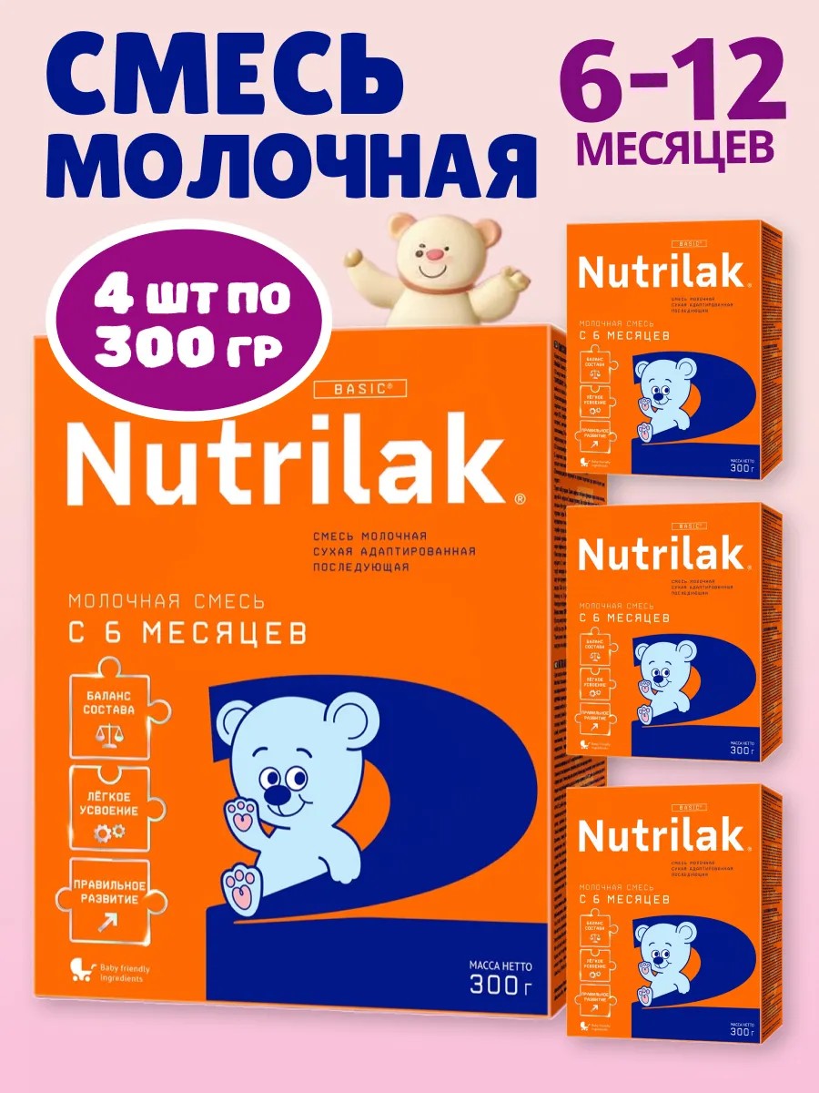 Комплектация4 пачки детской молочной смеси Нутрилак 2 по 300 грамм