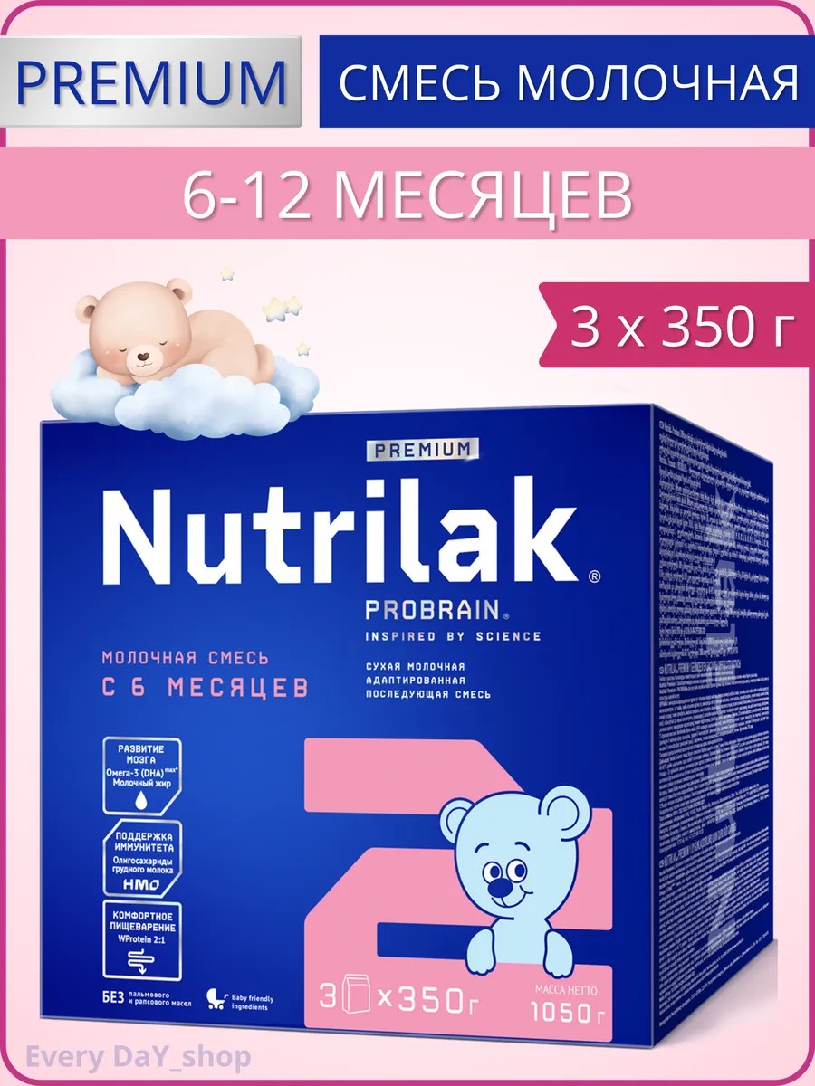 Детская смесь, последующая, для смешанного и искусственного вскармливания детей от 6 до 12 месяцев. Nutrilak Premium 2, 1050г. 3 пакета по 350г.