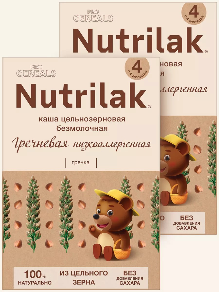 Гречка в природе не содержит глютен, богата железом и клетчаткой. Каши без глютена относятся к низкоаллергенным продуктам. Благодаря этим качествам низкоаллергенная безмолочная каша без сахара Nutrilak “Гречневая PROCEREALS” хорошо подходит для первого прикорма вашего малыша. После консультации с педиатром можно вводить в прикорм каши с 4 месяцев.