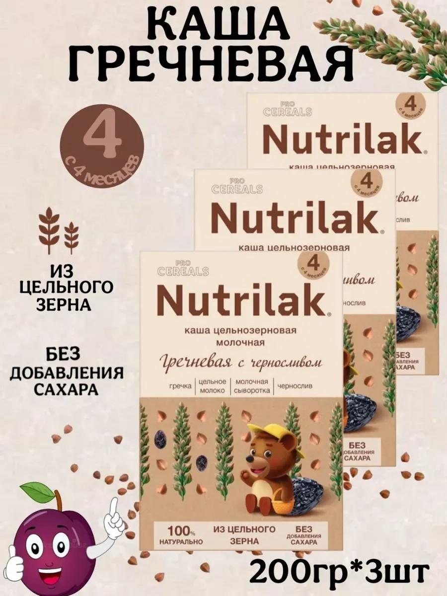 Каша детская молочная цельнозерновая Nutrilak “Гречневая с черносливом PROCEREALS ” 200 г c 4 месяцев