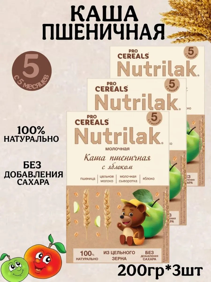 Каша детская молочная цельнозерновая Nutrilak “Пшеничная с яблоком PROCEREALS” 200 г c 5 месяцев