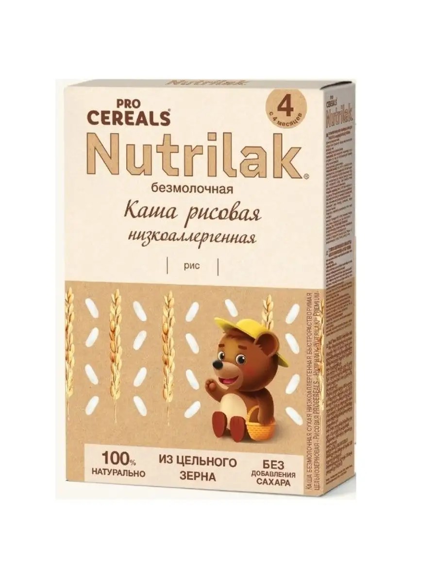 Procereals Dairy-Free, Low-Allergy Whole-Grain Rice Porridge, 200g. Rice is naturally gluten-free and ranks first among cereals in its content of easily digestible carbohydrates. Nutrilak's dairy-free, low-allergy "Procereals Rice" porridge is designed for baby's first complementary feeding, starting at 4 months. No added sugar. Nutrilak dairy-free whole-grain cereals are made from selected whole grains, which consist of the grain shell, germ, and core. While preserving their natural value, whole grains are a source of carbohydrates, vegetable protein, dietary fiber, vitamins, and minerals. Cereals made from this grain do not require additional enrichment. NOTHING EXTRA. SIMPLY USEFUL.