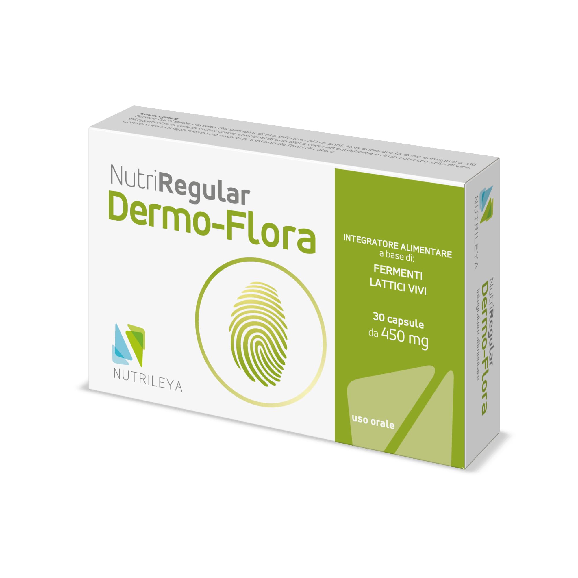 NutriRegular Dermo-Flora is a probiotic supplement designed for skin health. It contains specific strains with documented effects on acne, atopic dermatitis, and photoaging. It improves skin hydration, restores the skin barrier, and reduces the symptoms of sensitive skin. It is an ideal support during dermatological treatments and a natural skincare aid. INGREDIENTS Live lactic acid bacteriaScientific validation: Clinically proven efficacy through studies published in scientific journals. An ideal product for those seeking a highly effective and well-tolerated natural supplement, even for long-term use. Simple to take: Convenient capsules, to be taken daily for at least 2 months. Targeted plant-based formula: With Lactobacillus Reuteri, Rhamnosus, and Plantarum for skin health, supporting overall well-being through a synergistic combination of plant extracts, vitamins, and highly effective active ingredients. Say goodbye to acne, dermatitis, and skin discomfort. Improve your condition today with an all-natural and effective supplement specifically formulated for acne, atopic skin, dermatitis, and dryness.NutriRegular Dermo-Flora 30 Capsules - Support pour peau sensible avec Probiotiques ciblés - Utile en cas d'acné, de peau atopique, de dermatite et de vieillissement cutané - Sans gluten et lactoseDESCRIPTION DU PRODUIT DESCRIPTION DU PRODUIT NutriRegular Dermo-Flora est un complément probiotique conçu pour le bien-être cutané. Contient des souches spécifiques à action documentée sur l'acné, la dermatite atopique et le photoaging. Améliore l'hydratation de la peau, restaure la barrière cutanée et réduit les symptômes des peaux sensibles. Soutien idéal dans les traitements dermatologiques et adjuvant naturel pour la peau. INGRÉDIENTS Ferments lactiques vivantsValidation scientifique : efficacité cliniquement prouvée par des études publiées dans des revues scientifiques. Un produit idéal pour ceux qui recherchent un complément naturel à haute efficacité et bien toléré, même pour un usage prolongé. Mode de prise simple : mode d'utilisation pratique : capsules pratiques, à prendre au quotidien pendant au moins 2 mois. Formule végétale ciblée : avec Lactobacillus Reuteri, Rhamnosus et Plantarum pour la santé cutanée qui soutiennent le bien-être de l'organisme grâce à une combinaison synergique d'extraits végétaux, de vitamines et de principes actifs à haute efficacité. Adieu l'acné, les dermatites et les inconforts de la peau. Améliorez votre condition dès aujourd'hui avec un complément entièrement naturel et efficace spécifique en cas d'acné, de peau atopique, de dermites et de sécheresse.
