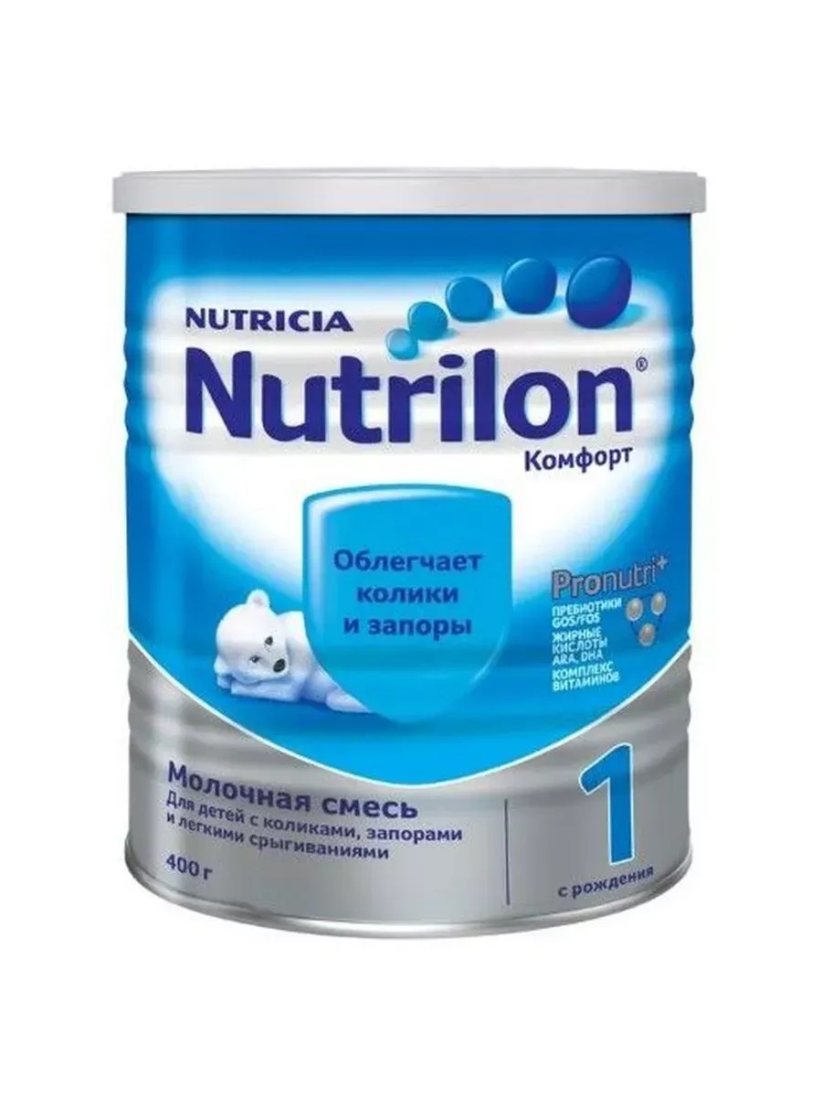 Nutrilon Комфорт 1С рождения• Для детей с коликами, запорами и легкими срыгиваниями• Облегчает колики и запорыPronutri+Пребиотики GOS/FOSЖирные кислоты ARA, DHAКомплекс витаминовБолее 120 лет Nutricia является экспертом в питании детей раннего возраста. Инновационные исследования в данной сфере проводит команда из более чем 500 ученых и экспертов. Наши исследования позволили нам создать Nutrilon Комфорт 1 для питания детей, которым диагностировали колики, запоры или легкие срыгивания.Nutrilon Комфорт 1 разработан на основе международных рекомендаций для нормализации пищеварения, обеспечивая 5 слагаемых комфорта: профилактику запоров, уменьшение колик, поддержку кишечной микрофлоры, легкое переваривание и уменьшение заглатывания воздуха.Nutrilon Комфорт 1 - специализированная смесь, которая способствует облегчению колик, запоров и легких срыгиваний, благодаря особому сочетанию ингредиентов:• Частично расщепленный белок коровьего молока легче переваривается;• Олигосахариды - иммуноактивные пребиотики (GOS/FOS) - нормализуют микрофлору кишечника, а также частоту и консистенцию стула;• Адаптированные липиды (ẞ-пальмитат) способствуют формированию мягкого стула;• Сниженная лактоза легче переваривается и сокращает газообразования и колики (содержание лактозы на 30% ниже, чем в обычной смеси);• Особые углеводы (прежелатинизированный крахмал) предотвращают легкие срыгивания, способствуя загущению смеси.Частично расщепленный белок коровьего молока в составе смеси обуславливает характерный горьковатый привкус смеси.Эффективность Nutrilon Комфорт 1 подтверждена международными клиническими исследованиями.Pronutri+ = Пронутри+ВАЖНО:• Для питания детей раннего возраста предпочтительнее грудное вскармливание.• Перед применением смеси проконсультируйтесь cо специалистом.• Несоблюдение инструкций по приготовлению и хранению смеси может нанести вред здоровью ребенка.• Никогда не оставляйте Вашего ребенка одного во время кормления.• Для детского питания.• Не допускается назначать де