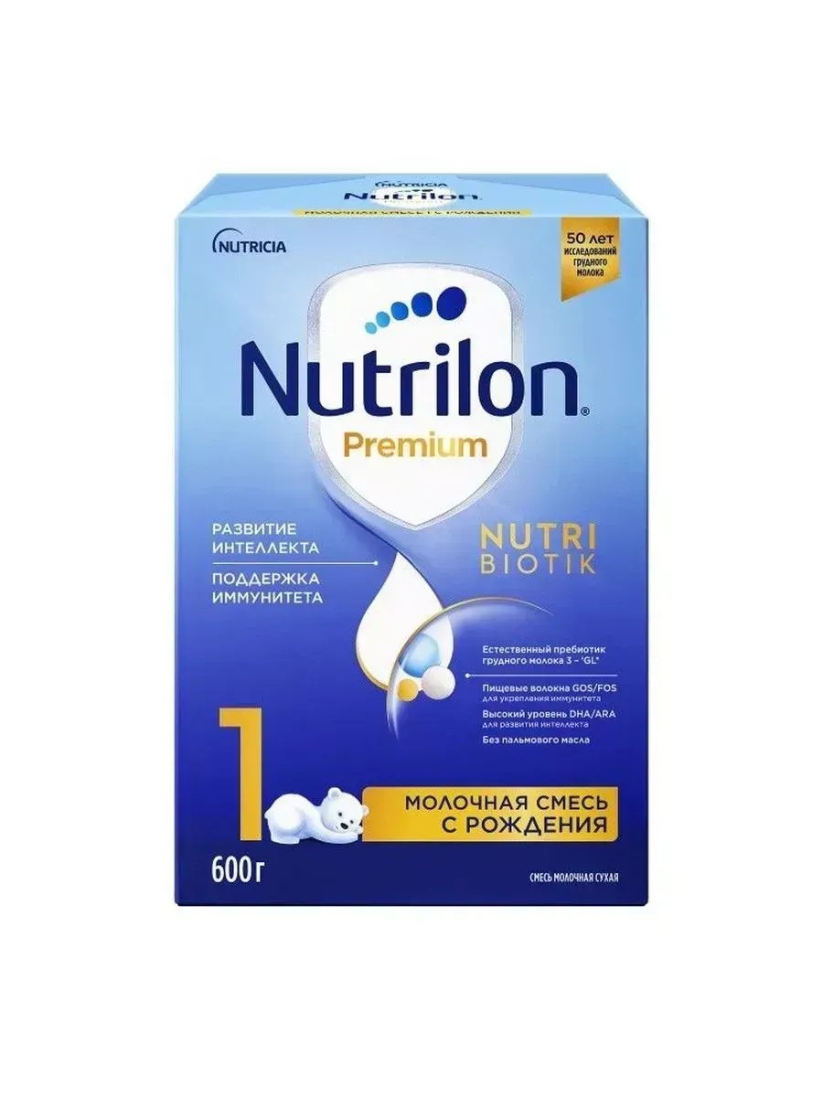 NUTRILON-1 PREMIUM СМЕСЬ МОЛОЧ СУХ ДЕТ 600,0NUTRILON-1 PREMIUM СМЕСЬ МОЛОЧНАЯ СУХАЯ - смесь молочная сухая начальная адаптированная. Цифра «1» в названии сухой молочной смеси означает, что продукт предназначается для питания детей с рождения.Возраст: с рождения, 0+600 г = 22 порции**Рассчитано на основании средней порции потребления смеси в возрасте 3 месяцев.50 лет исследований грудного молокаNutribiotikРазвитие интеллектаПоддержка иммунитетаЕстественный пребиотик грудного молока 3 - 'GL*Пищевые волокна GOS/FOS для укрепления иммунитетаВысокий уровень DHA/ARA для развития интеллектаБез пальмового маслаНачало жизни ребенка - особенное время. Прекрасное, иногда непредсказуемое, и - в первую очередь - непростое. И мы хотим быть рядом, чтобы помочь.Команда ученых Nutricia уже более 50 лет изучает грудное молоко как лучшее питание для поддержания иммунитета ребенка. Благодаря нашим многолетним исследованиям особенностей питания детей раннего возраста мы понимаем, как наилучшим образом поддержать развитие малыша. И мы стремимся поделиться с Вами нашими знаниями, чтобы Вы чувствовали себя увереннее.Наша полноценная сбалансированная формулаНа основе наших научных открытий мы разработали формулу, отвечающую потребностям именно Вашего ребенкаУникальный микс олигосахаридов (верхний шарик)Естественный пребиотик грудного молока 3'-GL*Пищевые волокна GOS/FOS укрепляют иммунитет и помогают противостоять инфекциямИммунонутриенты (средний шарик)Витамины С и D способствуют нормальному функционированию иммунной системыОмега-3 (ALA и DHA) (последний шарик)DHA способствует развитию мозга и нервной тканиОмега-6 (ARA и LA)* 3'-GL* - олигосахарид образуется в результате производства продукта по особой технологии Лактофидус с использованием молочнокислых культур. 3'-GL* - естественным образом присутствует в Грудном молоке и обладает пребиотическим эффектомПИЩЕВАЯ ЦЕННОСТЬ (средние значения)Наименование показателя; Единица измерения; На 100 г сухой смеси; На 100 мл готовой смесиБелок; г; 9,