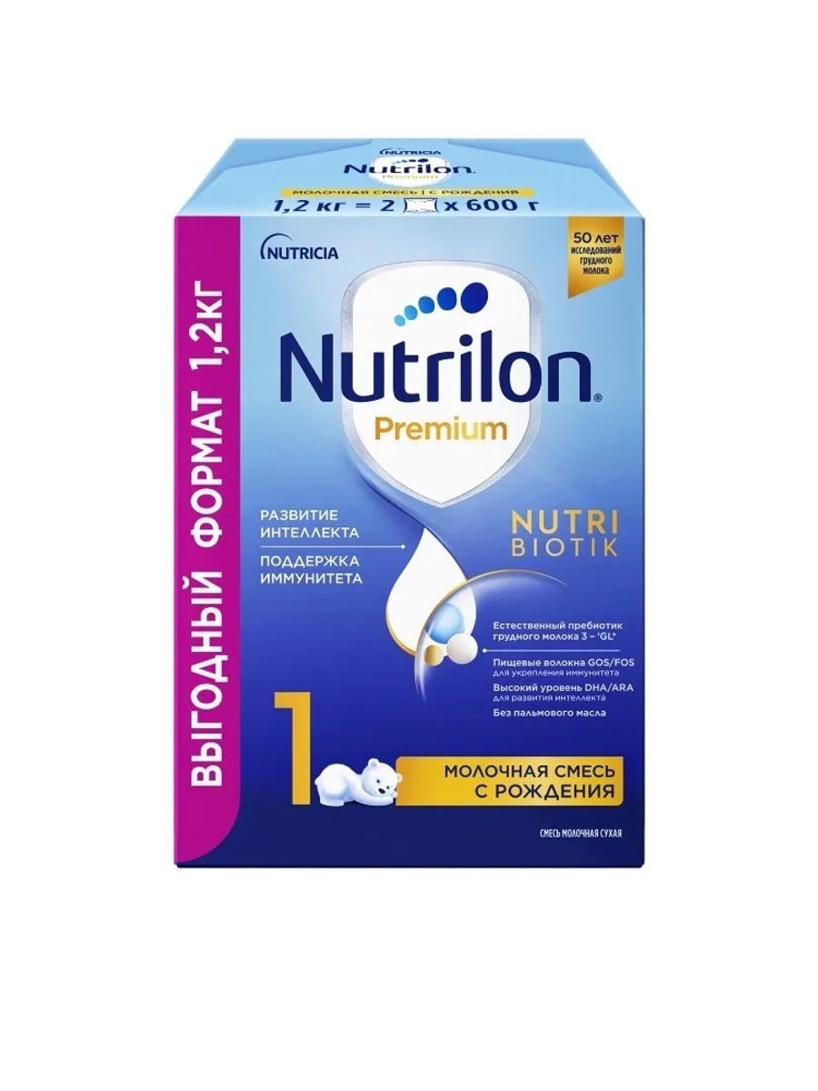 nutrilon-1 premium смесь молоч сух дет 1200,0. заменитель грудного молока, помогает малышу развиваться с самого рождения для детей с рождения смесь растительных масел, лактоза, обезжиренное молоко, пребиотики, рыбий жир, витаминный комплекс, соевый лецитин, таурин, микроэлементы, нуклеотиды, инозит