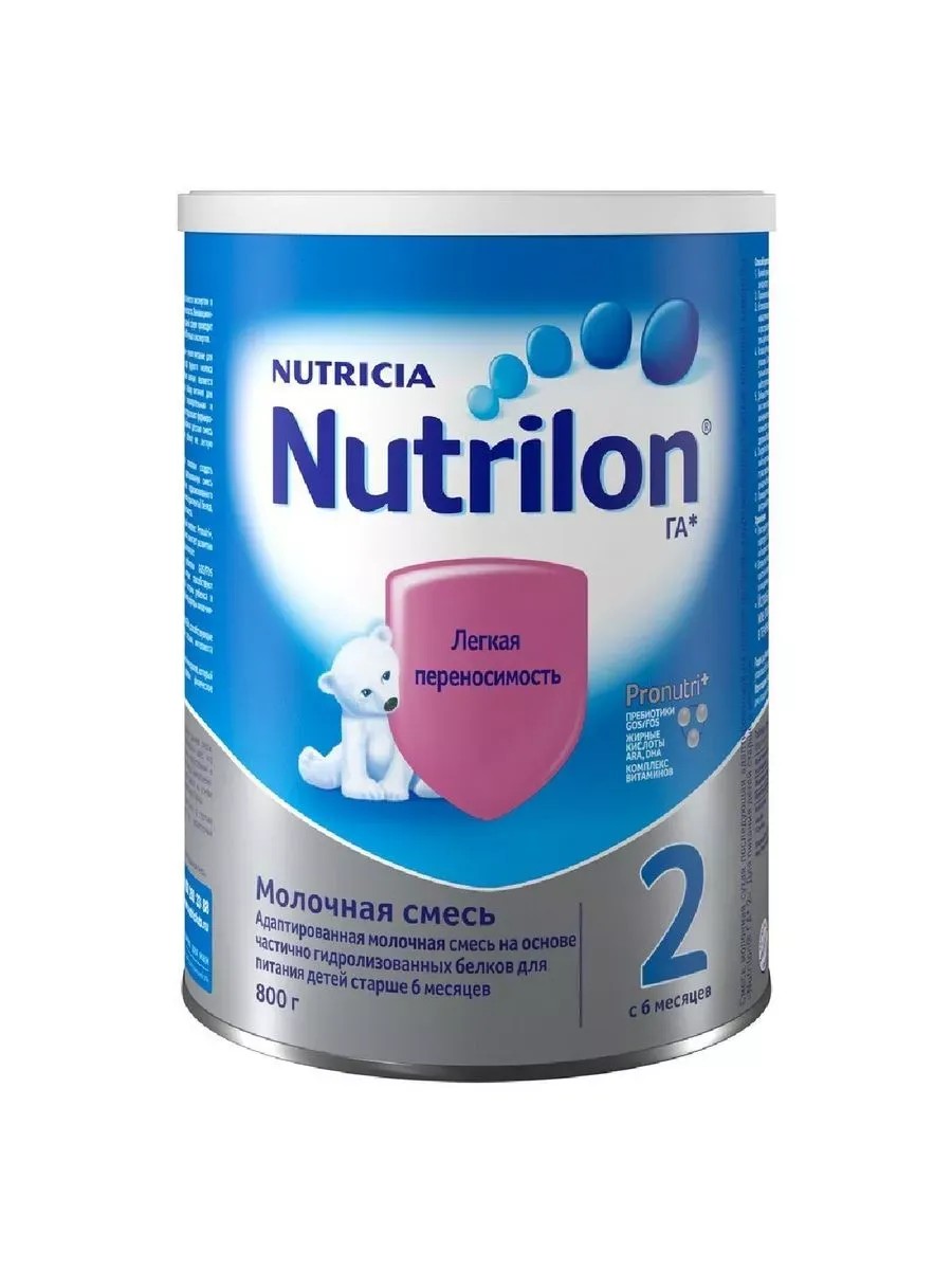 NUTRILON 2 ГА СМЕСЬ МОЛОЧ СУХ ДЕТ 800,0NUTRILON 2 ГА СМЕСЬ МОЛОЧНАЯ СУХАЯ ДЕТСКАЯ - смесь молочная сухая начальная адаптированная на основе частично гидролизованных белков молочной сыворотки «Nutrilon ГA* 2».Возраст: старше 6 месяцевNutrilon ГAБолее 120 лет Nutricia является экспертом в питании детей раннего возраста. Инновационные исследования в данной сфере проводит команда из более чем 500 ученых и экспертов.Грудное вскармливание - лучшее питание для ребенка. Однако, когда грудного молока недостаточно, особенно важным является тщательный подход к выбору питания для малыша, ведь его пищеварительная и иммунная системы еще продолжают формироваться. Правильно выбранная детская смесь поможет обеспечить ребенку ее легкую переносимость.Наши исследования позволили создать Nutrilon ГА* 2 - адаптированную смесь на основе частично гидролизованного (расщепленного на мелкие фрагменты) белка, что облегчает ее переносимость.Кроме того, уникальный комплекс Pronutri+, входящий в состав смеси, помогает развитию Вашего ребенка, ведь он включает:-Иммуноактивные пребиотики GOS/FOS (олигосахариды), которые способствуют развитию иммунной системы и поддержке здоровой микрофлоры кишечника ребенка;-Жирные кислоты ARA/DHA, способствующие развитию его нервной системы, интеллекта и органов зрения;-Комплекс витаминов и минералов, который поддерживает здоровое физическое развитие.Частично расщепленный белок в составе смеси обуславливает ее характерный горьковатый привкус.* Гидролизованная адаптированная смесьПИЩЕВАЯ ЦЕННОСТЬ**Наименование показателя Ед. измерения На 100 г порошка смеси На 100 мл готовой смесиЧастично гидролизованный сывороточный белок г 10,8 1,6Жиры г 20,3 3,0растительные г 19,6 2,9линолевая кислота г 2,72 0,400% от общей суммы жирных кислот 14Альфа-линоленовая кислота г 0,481 0,071Арахидоновая кислота кислота (ARA) мг 39 5,7Докозагексаеновая кислота (DHA) мг 39 5,7Углеводы г 56,7 8,4лактоза г 45 6,7% от общего количества углеводов 79крахмал г 9,5 1,4Пребиотики ГОС/ФОС (GOS/