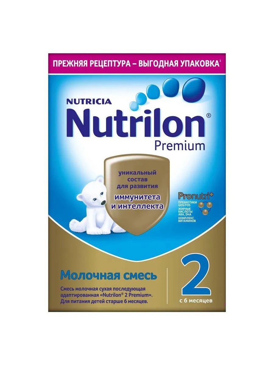 NUTRILON-2 PREMIUM СМЕСЬ МОЛОЧ СУХ ДЕТ 600,0NUTRILON-2 PREMIUM СМЕСЬ МОЛОЧНАЯ СУХАЯФормула нового поколения с уникальным комплексом Pronutri* помогает Вашему ребёнку развиваться:•Пребиотики GOS/FOS способствуют развитию собственной здоровой микрофлоры кишечника и поддерживают иммунитет ребёнка, помогая снижать риск возникновения аллергии и инфекций,•Улучшенный комплекс особых жирных кислот ARA/DHA способствует развитию его интеллекта,•Сбалансированный комплекс витаминов и минералов, разработанный специально с учетов потребностей детей до года, способствует правильному росту ребенка.Nutricia более 30 лет занимается изучением грудного молока. Благодаря многолетним научным исследованиям молочные смеси Nutrilon по составу и основным свойствам приблизились к совершенству.Грудное молоко - лучшее питание для детей раннего возраста.Premium = ПремиальныйPronutri+ = Пронутри+В каких случаях используется Nutrilon 2 Premium?Для детей раннего возраста грудное молоко является наилучшим питанием. Nutrilon 2 Premium используется в питании малышей при недостатке грудного молока у мамы или отсутствии возможности грудного вскармливания.В состав смеси входит уникальный комплекс пребиотиков IMMUNOFORTIS, по составу и свойствам приближенный к пребиотикам грудного молока и естественным образом способствующий укреплению иммунной системы малыша.В состав сухой молочной смеси Nutrilon 2 в соотношении, близком к грудному молоку, входят особые жирные кислоты ARA, DHA, которые важны для правильного формирования головного мозга и органов зрения ребенка.Смесь обогащена селеном и бета-каротином для защиты организма ребёнка и поддержания его иммунитета.Nutrilon 2 содержит белок в количестве 1,8 г на 100 мл смеси, что соответствует возросшим потребностям ребёнка второго полугодия жизни.Перед применением смеси проконсультируйтесь со специалистом.Несоблюдение инструкций по приготовлению и хранению смеси может нанести вред здоровью ребенка.Никогда не оставляйте Вашего ребенка одного во время кормления.