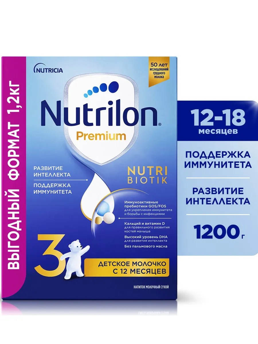 Перед применением смеси проконсультируйтесь соспециалистом. Смесь молочная Nutrilon Premium 3 предназначена для питания детей с 12 месяцев.