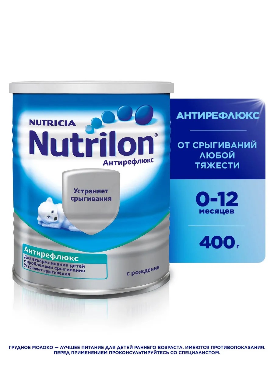 Nutrilon Антирефлюкс эффективно устраняет срыгивания, так как содержит природный загуститель — камедь бобов рожкового дерева , которая благоприятно влияет на желудочно-кишечный тракт ребенка. Nutrilon Антирефлюкс может использоваться в качестве дополнения к грудному молоку (если грудного молока недостаточно) или в качестве базовой молочной смеси при синдроме срыгивания, так как содержит все необходимые ингредиенты для роста и развития малыша. Также в смеси содержится комплекс особых жирных кислот ARA/DHА, который способствует развитию интеллекта.