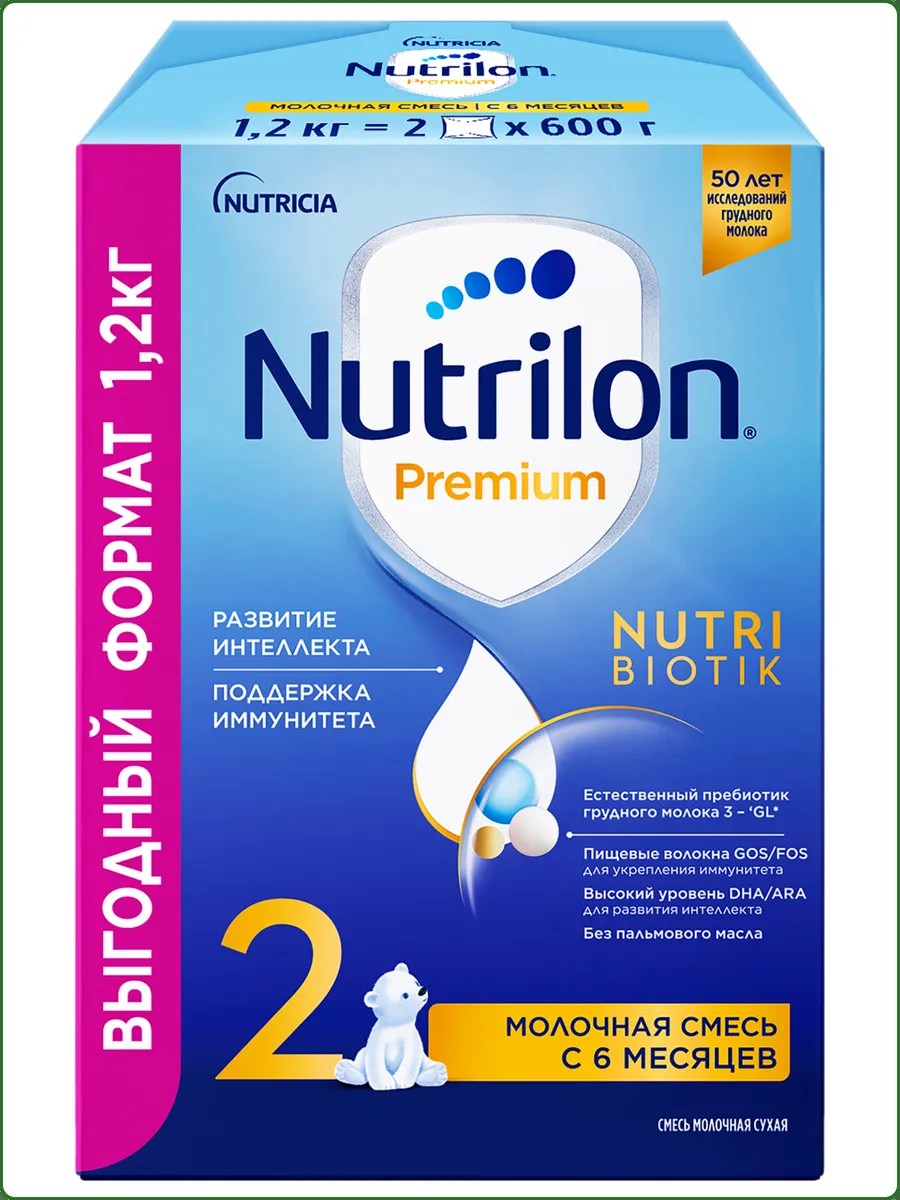Полное наименование товараСмесь молочная NUTRILON Premium 2, с 6 месяцев, 1200г
