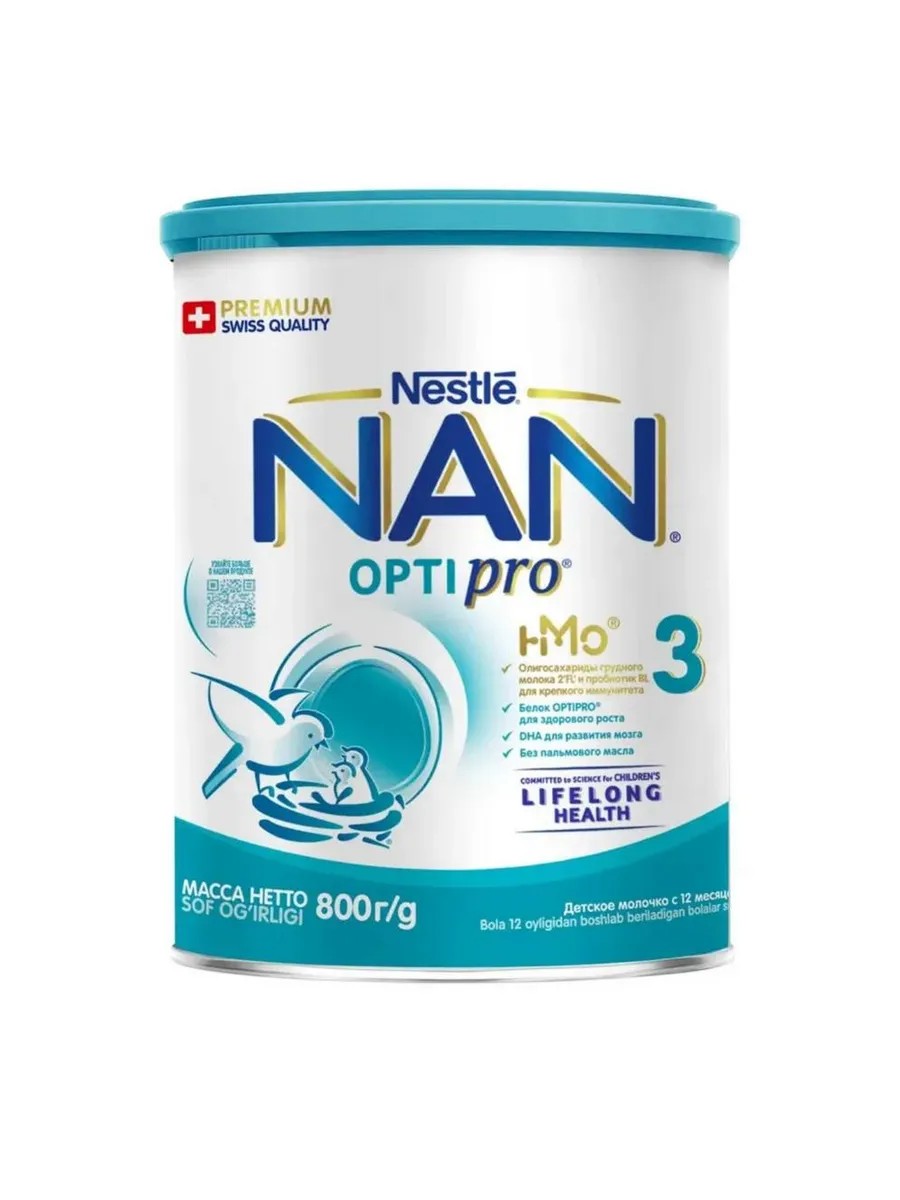 NAN 3 OPTIPRO молочко для роста, иммунитета и развития мозга 800 г с 0мес. НАН 3 OPTIPRO - специально разработанное детское молочко для питания детей от 1 года до 1,5 лет, созданное на основе данных, полученных благодаря исследованям Nestle в области обеспечения здоровья детей на протяжении всей жизни.Молочко содержит уникальную комбинацию ингредиентов: OPTIPRO 2 FL и BL Probiotic, которые поддержат здоровое развитие вашего ребенка , помогая вам заложить крепкую основу для будущего здоровья Вашего ребенка.OPTIPRO - оптимизированный белковый комплекс, обеспечивающий ребенка правильным количеством белка, которое требуется ему для оптимальтного роста.Олигосахарид 2 FL, олигосахарид структурно идентичный наиболее распространенному виду олигосахаридов грудного молока. Олигосахариды 2 FL помогают поддерживать иммунитет.BL PROBIOTIC: натуральный пробиотик, который помогает поддерживать здоровую иммунную систему малыша.