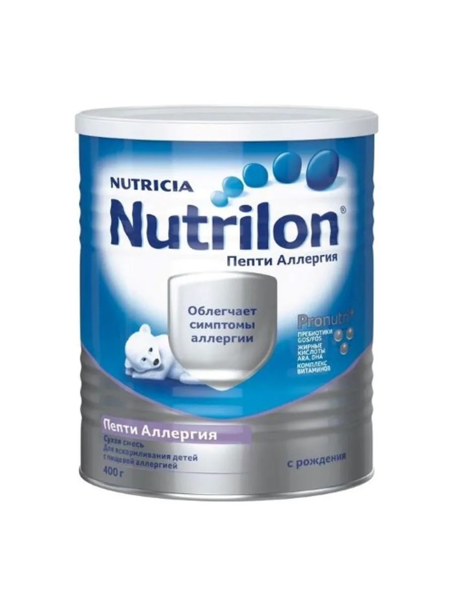 Nutrilon Pepti Allergy Dry Mix for Children 400.0. Easily absorbed in the intestines and does not cause an allergic reaction; naturally strengthens the immune system; promotes optimal development of the brain and visual organs for children with food allergies with prebiotics; hydrolyzed whey protein concentrate, maltodextrin, a blend of oils, citric acid esters and mono- and diglycerides of fatty acids, fish oil, choline, vitamin complex, taurine