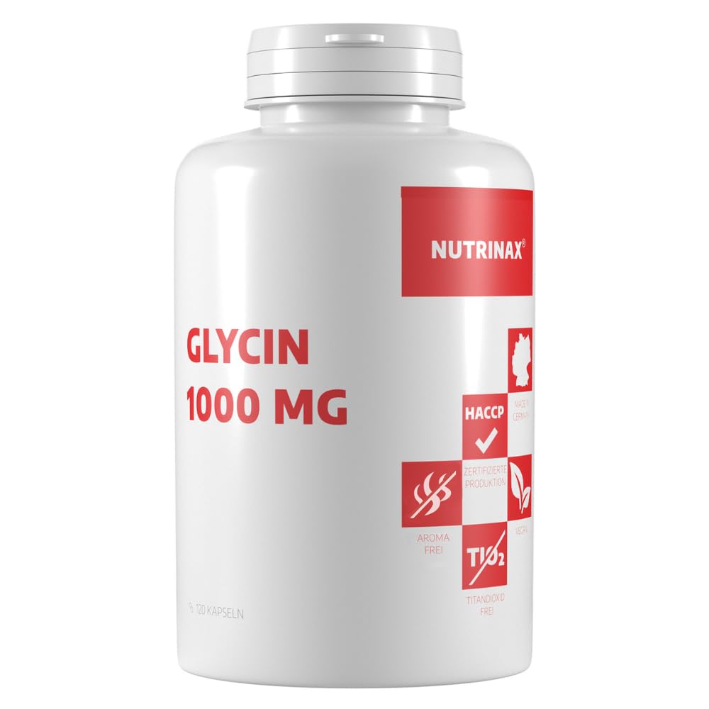 Nutrinax Glycine 1000 mg 120 gélules végétaliennes hautement dosées - Fabriqué en Allemagne - Pour 120 jours de glycine 120 Stück (1er Pack)