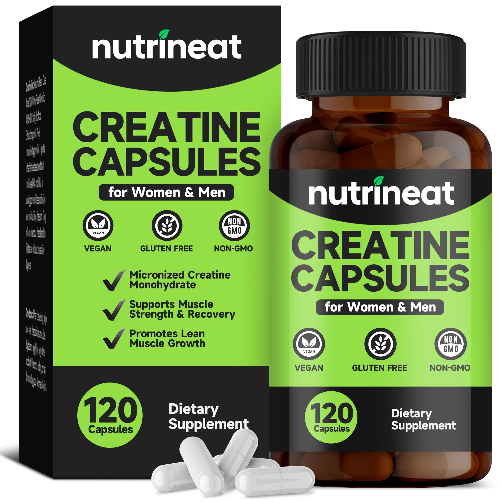 NutriNeat Creatine Capsules (120 Capsules) Creatine Monohydrate Capsule Creatine Supplements for Women & Men 1000 mg per Serving Workout Nutrition for Men and Women