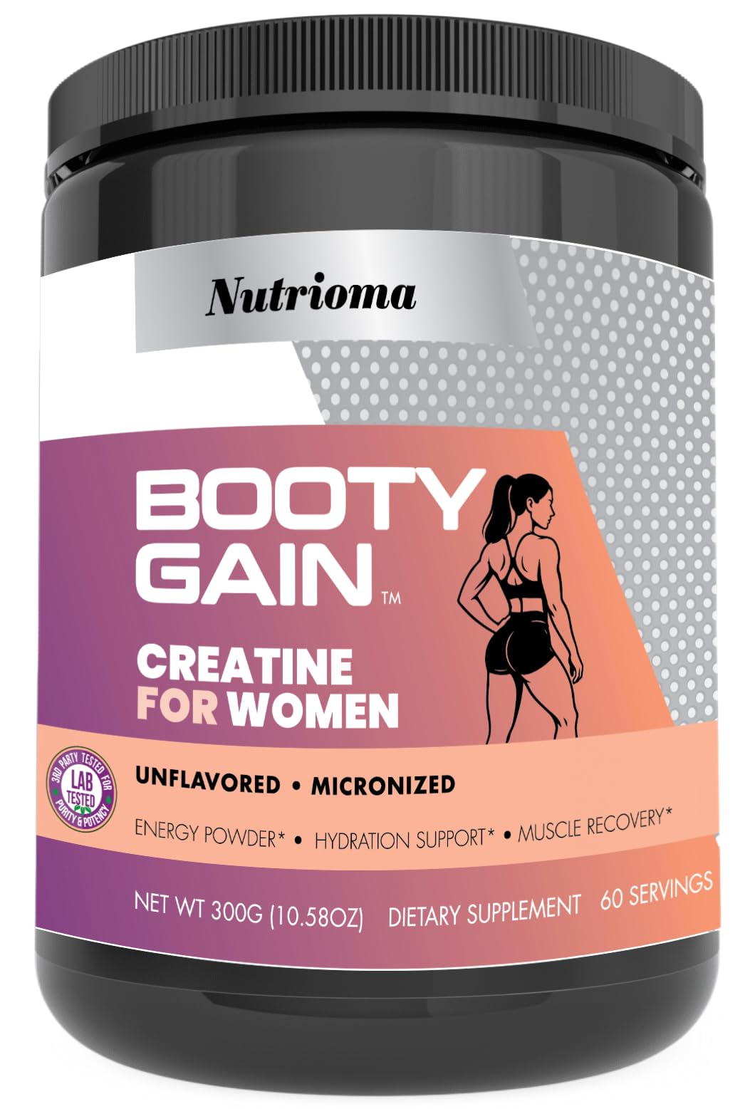 TRANSPARENT QUALITY – MADE IN USA: Our Nutrioma glute builder supplement produced in GMP-certified USA labs and third-party tested for purity and potency. This micronized, unflavored creatine ensures maximum absorption and supports muscle tone, booty gains, and consistent performance. Creatina para mujeres for daily training. SCIENCE-BACKED FOR WOMEN'S FITNESS: Each serving of this premium creatina monohydrate powder delivers 5g to support lean muscle, glute definition, and cognitive performance. Free from sugar, gluten, and artificial ingredients, this pure micronized creatine fuels workouts effectively. Creatina monohidratada delivers premium quality and ensures consistent results with every serving. CREATINE INSTANTIZED NON-BULKING: Our micronized creatine unflavored dissolves instantly and is gentle on digestion, supporting faster muscle energy and post-workout recovery, all without bloating or unwanted bulk. Clean, effective, and perfect for daily training with visible results. WORKOUT RECOVERY ENERGY BOOST: Our creatine for women booty gain delivers fast-absorbing muscle fuel to enhance strength, energy, and endurance during resistance training. Whether pre or post workout, it supports performance and faster recovery, perfect for gym, home, or fitness routines. BOOTY GAINS LEAN MUSCLE SUPPORT: Our Nutrioma creatine for women is designed for women seeking visible booty gains and a stronger body. Each scoop fuels glute and leg training, enhancing muscle growth and tone without unwanted bulk. A perfect glute builder supplement.