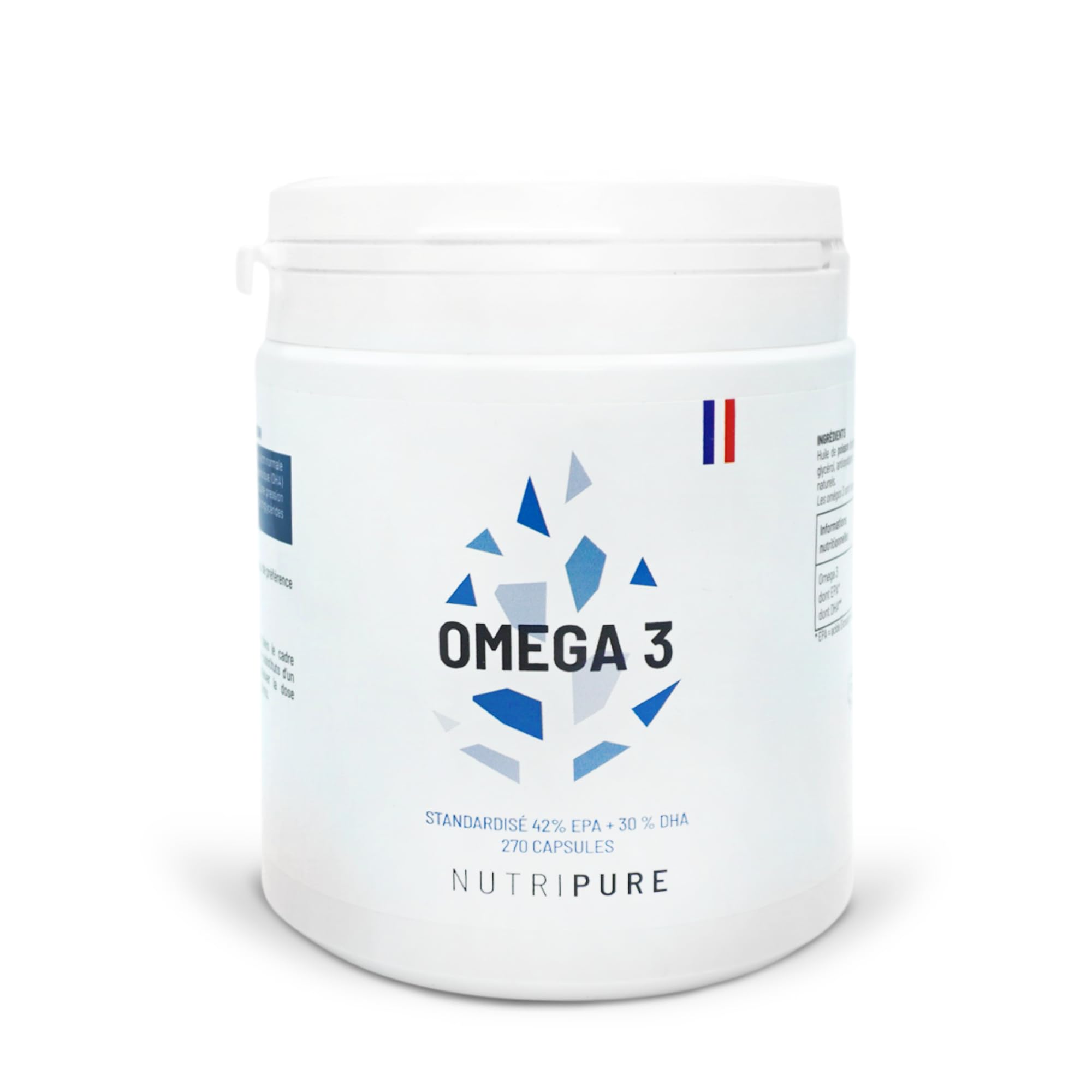 We prioritize sourcing our fish from minimally industrialized and polluted areas. That's why we've selected a "Friend of the Sea" sustainable fishing zone located off the coast of Peru and Chile in the Southeast Pacific. The choice of fish is also crucial we prefer small, wild-caught fish like anchovies because of their rapid growth and short reproductive cycle. This results in lower levels of pollutants compared to larger fish such as salmon or tuna, which are at the top of the food chain and therefore accumulate more pollutants (pesticides, mercury, dioxins). Gentle Production and Respect for Raw Materials: We favor low-temperature oil extraction this preserves the integrity of the Omega-3 fatty acids. The oil selected by Nutripure is the richest in Omega-3 currently available: each capsule contains 1000mg of Omega-3, including 420mg of EPA and 300mg of DHA. To eliminate any remaining impurities, we then proceed with a decontamination process. This allows our fish-based softgels to be produced in Brittany, using the purest oil possible. Nutripure Omega-3s are concentrated in the form of triglycerides. These fatty acids, also known as "polyunsaturated triglycerides," differ from saturated fatty acids in that they are better for your health. Because we prioritize quality, you won't find Omega-3 in ethyl ester form in our Nutripure products. The freshness of the Omega-3s is crucial: We offer oil with an oxidation (TotOx) value between 1 and 6! If this number exceeds 10, the oil is too oxidized. If the TotOx value isn't mentioned: avoid it! Ingredients: Fish oil, marine gelatin (fish), humectant: glycerol, antioxidants: rosemary extract and blend of natural tocopherols. Omega-3 fatty acids are in triglyceride form.MADE IN FRANCE: Nutripure food supplements are made in France and are GMO-free. Our fish oil is EPAX and Friends of the Sea certified, guaranteeing eco-responsible fishing and a purity exceeding current standards. Gluten-free, not vegan. DOSAGE: The recommended dosage for Nutripure omega-3 food supplement is 3 capsules per day with a glass of water, preferably with meals to distribute the omega-3 doses. 3 capsules provide 2400mg of omega-3, including 1260mg of EPA and 900mg of DHA. We recommend storing your capsules in the refrigerator. Pack of 90 capsules, a 1-month supply. OMEGA 3 - THE STAR INGREDIENT: Nutripure Omega 3, derived from fish oil, is extracted at low temperature to preserve its properties and then decontaminated to eliminate any remaining impurities. Coated in fish gelatin in Brittany to protect against oxidation. Vitamin E and rosemary extract also slow down the oxidation of omega 3. The perfect alternative to cod liver oil! ESSENTIAL FOR YOUR BODY: Omega 3 capsules are a perfectly suited solution for maintaining good eye, brain, and heart health. Despite a healthy diet, our bodies cannot produce them. Traditionally, omega 3 supplements were obtained from cod liver oil, which isn't always to everyone's liking. We offer you an alternative, based on fish oil. Highly concentrated, our omega 3 is recognized as the market benchmark. OMEGA 3 DEFENSE SUPPLEMENT: Omega-3 fatty acids are essential for our bodies. They contribute to the maintenance of various bodily functions—especially normal heart function—and promote healthy brain function and vision. Not a fan of cod liver oil? Our defense supplement offers an alternative with our fish oil.Omega 3 3000mg • Complément Alimentaire Défense • Huile de Poisson labélisée • Haute Concentration en EPA et DHA • Hautement Biodisponible • 270 gélules • Cure de 3 mois • Made in France • NutripureDESCRIPTION DU PRODUIT Nous accordons de l'importance au fait de pêcher nos poissons dans des zones très peu industrialisées et très peu polluées. C'est pourquoi nous avons sélectionné une zone raisonnée « Friend of the Sea », qui se situe au large du Pérou et du Chili, dans le Sud Est du Pacifique. Le choix des poissons est lui aussi important nous préférons les petits poissons sauvages tels que les anchois, dans la mesure où ils ont une croissance rapide et un cycle de reproduction court. Ils contiennent ainsi peu de polluants contrairement aux gros poissons comme le saumon ou le thon qui sont en fin de chaîne alimentaire et concentrent ainsi davantage de déchets (pesticides, mercure, dioxines). Fabrication douce et respect de la matière première Nous favorisons l'extraction des huiles à basse température cela permet de ne pas dénaturer les Oméga 3. L'huile sélectionnée par Nutripure est l'huile la plus riche en Omega 3 actuellement disponible : chaque gélule contient 1000mg d'Omega 3 dont 420mg d'EPA et 300mg de DHA. Afin d'éliminer les dernières impuretés, nous procédons ensuite à une décontamination. Les capsules molles à base de poisson peuvent ainsi être réalisées en Bretagne, avec l'huile la plus pure possible. Les Oméga 3 Nutripure sont concentrés sous la forme de triglycérides. Ces acides gras dits aussi « poly-insaturés trigltcérides », se différencient des acides gras saturés dans la mesure où ils sont meilleurs que ces derniers pour la santé. Puisque nous privilégions la qualité, vous ne trouverez pas d'Oméga 3 sous forme d'esther d'éthyle dans nos produits Nutripure. La fraicheur des Omega 3 est déterminante : Nous proposons une huile avec une oxydation (TotOx) entre 1 et 6 ! Si ce nombre dépasse 10, l'huile est trop oxydée. Si le TotOx n'est pas mentionné : fuyez ! Ingrédients Huile de poisson, gélatine marine (poisson), humectant : glycérol, antioxydants : extraits de romarin et mélange de tocophérols naturels. Les omégas 3 sont sous forme de triglycérides.MADE IN FRANCE : Les compléments alimentaires Nutripure sont fabriqués en France et sont sans OGM. Notre huile de poisson est labelisée EPAX et Friends of the Sea, garantissant une pêche éco-responsable et une pureté supérieure aux normes en vigueur. Produit sans gluten, non vegan