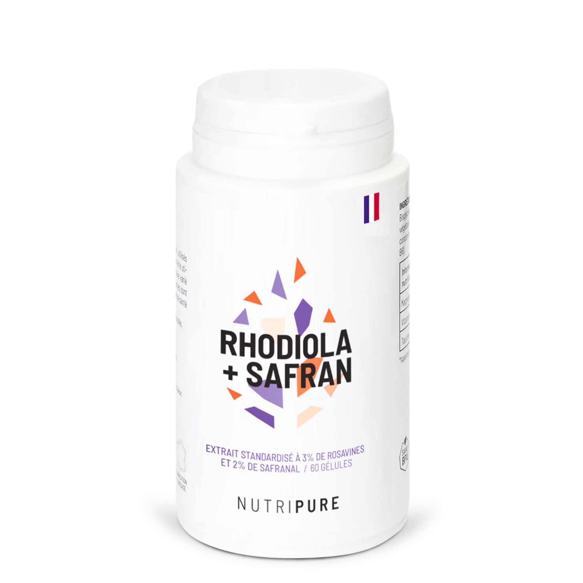 MADE IN FRANCE: The Rhodiola Rosea Saffron dietary supplement is made in France to provide maximum effectiveness with the selection of the best raw materials. Nutripure Guarantee: gluten-free, casein-free, and GMO-free. Vegetable capsules. DOSAGE: The recommended daily dose of our Nutripure Rhodolia Rosea Saffron dietary supplement is 1 capsule per day with a large glass of water, preferably in the morning. At Nutripure, we recommend increg the dosage to 2 capsules per day when the effects of 1 capsule are no longer felt. NATURAL AND COMPLETE COMPOSITION: A concentrated and standardized extract guarantees the presence of active ingredients from Rhodiola Rosea and Saffron flower. Thanks to their excellent composition, one capsule of Rhodiola Saffron is sufficient to notice their effects. Indeed, each capsule contains 600mg of Rhodiola Rosea (titrated at 3 rosavins) and 15mg of Saffron (titrated at 2 Safranal). IMPROVE YOUR MENTAL AND PHYSICAL CONDITION: Rhodiola Rosea - a plant antioxidant that protects cells - promotes the body's resistance to stress, particularly physical stress, contributes to optimal relaxation and improves endurance. Saffron extract supports emotional balance and helps maintain a positive mood. ORGANIC RHODIOLA AND SAFFRON FOOD SUPPLEMENT: Rhodiola Rosea is a traditional plant that has been used for centuries in Scandinavian countries, Russia and Asia where it grows on rocky slopes. It is one of the "adaptogenic" plants, which have the property of helping the body adapt to the various stresses that affect it, without causing harmful effects on it.MADE IN FRANCE : Le complément alimentaire de Rhodiola Rosea Safran est fabriqué en France, afin de proposer une efficacité maximale avec la sélection des meilleures matières premières. Garantie Nutripure: sans gluten, caséine ou OGM. Gélules végétales. POSOLOGIE : La dose journalière de notre complément alimentaire Rhodolia Rosea Safran Nutripure recommandée est de 1 gélule par jour avec un grand verre d'eau, de préférence le matin. Chez Nutripure. nous conseillons d'augmenter la posologie à 2 gélules par jour lorsque les effets d'1 gélule ne se font plus sentir. COMPOSITION NATURELLE ET COMPLETE: Un extrait concentré et standardisé permet de garantir la présence de principes actifs de la Rhodiola Rosea et de la fleur de Safran. Grâce à leur excellente composition, une gélule de Rhodiola Safran est suffisante pour en noter les effets. En effet, chaque gélule contient 600mg de Rhodiola Rosea (titré à 3 de rosavines) et 15mg de Safran (titré à 2 de Safranal). AMÉLIOREZ VOTRE CONDITION MENTALE ET PHYSIQUE : La Rhodiola Rosea - antioxydant végétal qui protège les cellules - favorise la résistance de l'organisme au stress, notamment physique, contribue à une relaxation optimale et permet d'améliorer son endurance. L'extrait de safran soutient quant à lui l'équilibre émotionnel et aide à maintenir une humeur positive. COMPLÉMENT ALIMENTAIRE DE RHODIOLA ET SAFRAN BIO : La Rhodiola Rosea est une plante traditionnelle utilisée depuis des siècles dans les pays scandinaves, la Russie et l'Asie où elle pousse dans les pentes rocheuses. Elle fait partie des plantes « adaptogènes », qui ont la propriété d'aider l'organisme à s'adapter aux divers stress qui l'affectent, et ce sans provoquer d'effets néfastes sur ce dernier.