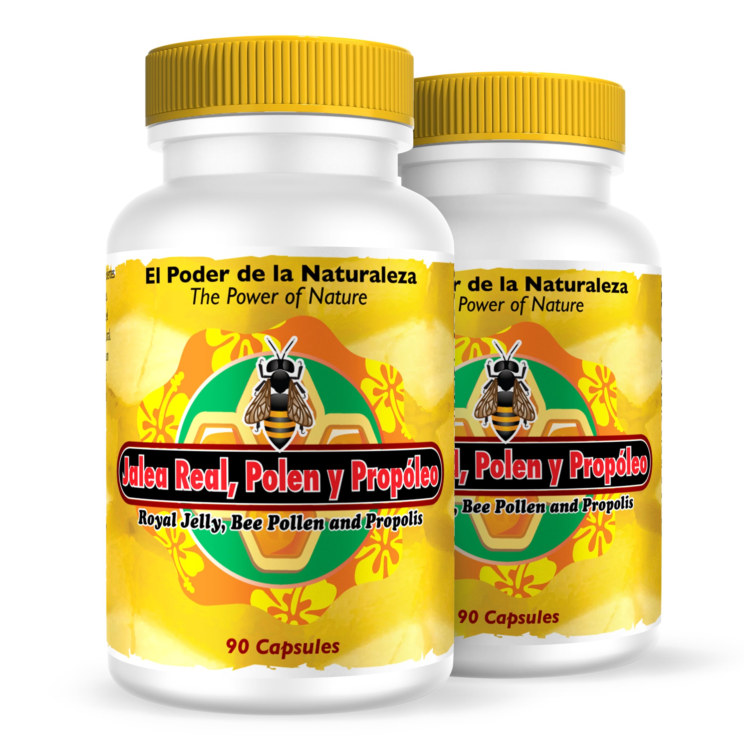 JALEA REAL, POLEN Y PROPOLEO . 3 de los ingredientes naturales mas beneficiosos para el organismo en una sola capsula. Jalea Real: El alimento de la Abeja Reyna, retarda el proceso del envejecimiento y brinda una sensacion de fortaleza y energia natural. Polen: Contiene 50 mas proteina que la carne de res y tiene un alto contenido de aminoacidos, trabaja como tonico rejuvenecedor y da vitalidad al organismo. Propoleo: Producido por las abejas para proteger la colmena. Ahora en UNA SOLA CAPSULA: Jalea Real, Polen y Propoleo. Personas alergicas a productos derivados de las abejas NO deberian consumir este producto.