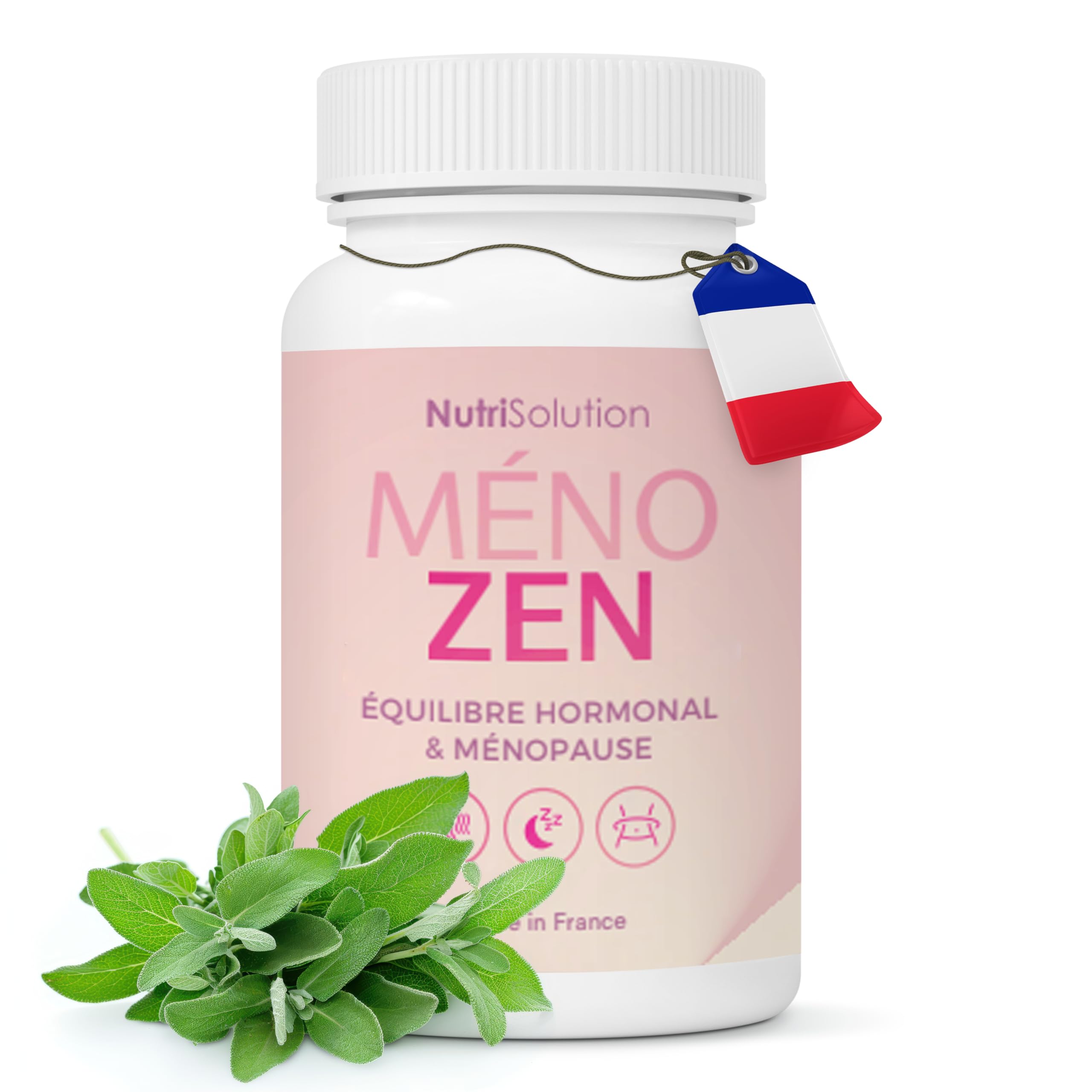 "NutriSolution Meno Zen: Your Natural Ally for a Balanced Menopause Méno Zen is a carefully developed supplement to support women during the menopausal transition in a natural and effective way. Our unique blend of herbal ingredients work synergistically to help maintain hormonal balance and relieve common discomforts of menopause. Main Benefits: Naturally alleviates menopausal symptoms Reduces hot flashes, mood swings and helps treat insomnia Restores hormonal balance effortlessly Helps reverse menopausal weight gain Promotes general well-being and vitality Méno Zen presents a three-phase formula, ensuring balanced support throughout the day. Each bottle contains 63 capsules, providing 21 days of treatment (3 capsules per day). INGREDIENTS "Ingredients for 3 capsules: Dry hop extract (HPMC) Chasteberry fruit powder: 200 mg Soybean dry extract (HPMC): 75 mg (including 37.5 mg isoflavones) Sage dry extract (HPMC): 100 mg Ashwagandha root extract with 1.5 withanolides Chicory root dry extract: 100 mg Dry extract of Cohosh roots: 100 mg Dry extract of Angelica sinensis roots: 100 mg Dry extract of Rhodiola rosea roots with 3 rosavins Lithothamne (Phymatolithon calcareum): 50 mg Dry extract of Holy Basil leaves: 100 mg Pyridoxine HCl: 0.85 mg Anti-caking agent: stearate magnesiumQUALITY FRENCH PRODUCTION: Made in France according to strict standards. Take 3 capsules daily with water, preferably at mealtimes. 63 capsules provide 21 days of natural menopause support. COMPLETE FORMULA: Contains soy isoflavones, black cohosh, sage, angelica, and vitamin B6, known for their potential benefits in managing menopausal symptoms and supporting women's health. WEIGHT MANAGEMENT AIDS: Meno Zen may help reverse menopause-related weight gain by reducing levels of fat-storing hormones and supporting fat-burning hormones, helping to maintain a healthy weight. HORMONE BALANCE SUPPORT: Our unique blend of herbal ingredients helps effortlessly restore hormonal balance, potentially reducing discomfort associated with hormonal fluctuations during menopause. NATURAL MENOPAUSE RELIEF: Meno Zen is specially formulated to naturally alleviate common menopause symptoms, including hot flashes, mood swings, and sleep disturbances, promoting overall well-being and vitality. "NutriSolution Méno Zen : Votre Allié Naturel pour une Ménopause Équilibrée Méno Zen est un complément soigneusement élaboré pour accompagner les femmes durant la transition ménopausique de manière naturelle et efficace. Notre mélange unique d'ingrédients à base de plantes agit en synergie pour aider à maintenir l'équilibre hormonal et à soulager les inconforts courants de la ménopause. Principaux Avantages : Atténue naturellement les symptômes de la ménopause Réduit les bouffées de chaleur, les sautes d'humeur et aide à traiter l'insomnie Rétablit l'équilibre hormonal sans effort Aide à inverser la prise de poids liée à la ménopause Favorise le bien-être général et la vitalité Méno Zen présente une formule tri-phasée, assurant un soutien équilibré tout au long de la journée. Chaque flacon contient 63 gélules, fournissant 21 jours de traitement (3 gélules par jour). INGRÉDIENTS "Ingrédients pour 3 gélules: Extrait sec de houblon (HPMC) Poudre de fruit de gattilier : 200 mg Extrait sec de graine de soja (HPMC) : 75 mg (dont 37,5 mg d'isoflavones) Extrait sec de sauge (HPMC) : 100 mg Extrait de racines d'Ashwagandha à 1,5 withanolides Extrait sec de racines de Chicorée : 100 mg Extrait sec de racines d'Actée à grappes : 100 mg Extrait sec racines d'Angélica sinensis : 100 mg Extrait sec de racines de Rhodiola rosea à 3 rosavines Lithothamne (Phymatolithon calcareum) : 50 mg Extrait sec de feuilles de Basilic sacré : 100 mg Pyridoxine HCl : 0.85 mg Antiagglomérant : stéarate de magnésiumPRODUCTION FRANÇAISE DE QUALITÉ : Fabriqué en France selon des normes strictes. Prenez 3 gélules par jour avec de l'eau, de préférence au moment des repas. 63 gélules fournissent 21 jours de soutien naturel pour la ménopause. FORMULE COMPLÈTE : Contient des isoflavones de soja, de l'actée à grappes, de la sauge, de l'angélique et de la vitamine B6, connus pour leurs bienfaits potentiels dans la gestion des symptômes de la ménopause et le soutien de la santé des femmes. AIDE À LA GESTION DU POIDS : Méno Zen peut aider à inverser la prise de poids liée à la ménopause en réduisant les niveaux d'hormones stockeuses de graisses et en soutenant les hormones brûleuses de graisse, aidant ainsi à maintenir un poids santé. SOUTIEN DE L'ÉQUILIBRE HORMONAL : Notre mélange unique d'ingrédients à base de plantes aide à rétablir l'équilibre hormonal sans effort, réduisant potentiellement l'inconfort associé aux fluctuations hormonales pendant la ménopause. SOULAGEMENT NATUREL DE LA MÉNOPAUSE : Méno Zen est spécialement formulé pour atténuer naturellement les symptômes courants de la ménopause, notamment les bouffées de chaleur, les sautes d'humeur et les troubles du sommeil, favorisant le bien-être général et la vitalité.
