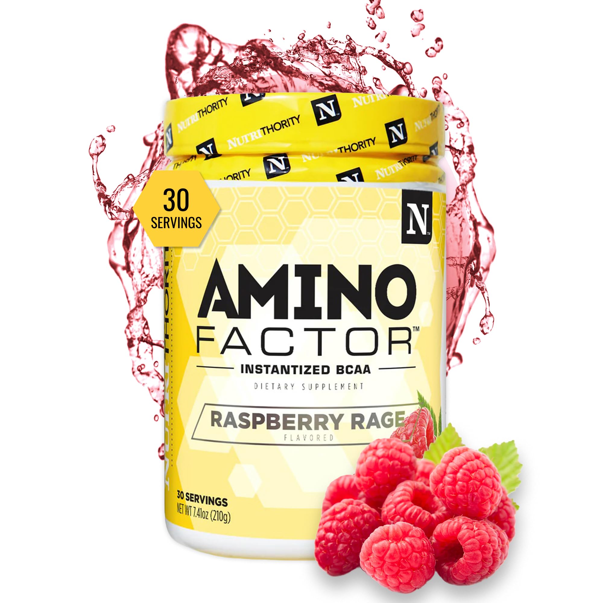 Nutrithority - BCAA Powder Post Workout Recovery Powder with BCAAs Amino Acids L-Isoleucine L-Leucine and L-Valine Improve Muscle Recovery and Hydration Sugar Free (Raspberry Rage) (30 Servings)