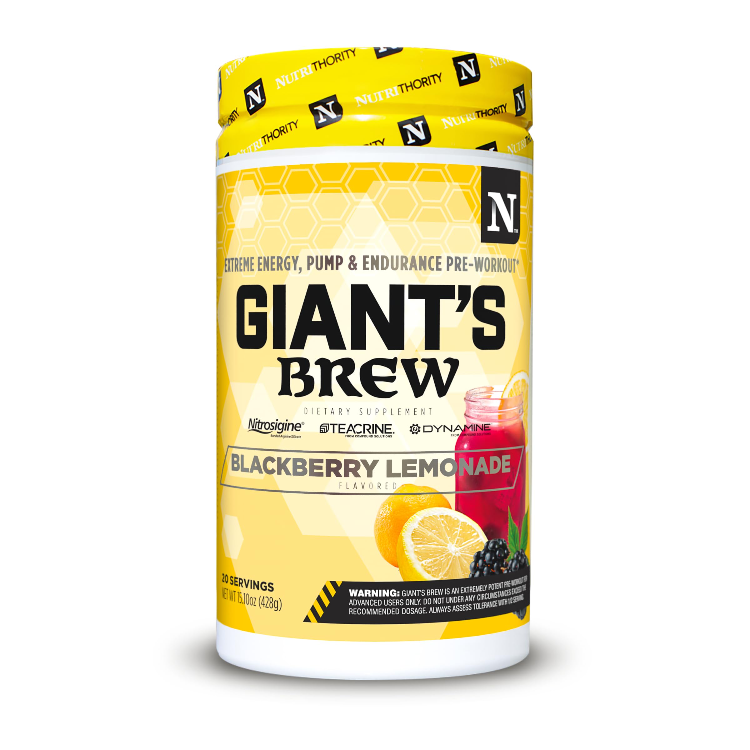 Nutrithority Giant s Brew Advanced Pre Workout BlackBerry Lemonade - All in One Complete Formula for Intense Workouts - Long Lasting Focus Amplified Power Drive Energy Pump & Endurance