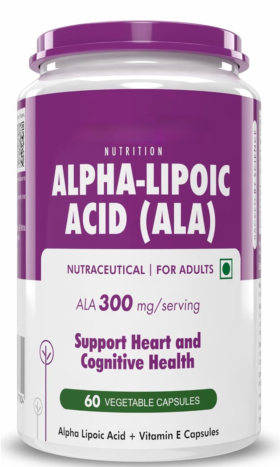 Made at Facility that is registered with FSSAI. Non-GMO Gluten Free. No Colour Added No Artificial Colour or Flavour. 300mg per Serving Alpha Lipoic Acid. 60 Servings Per Bottle (2 months supply).