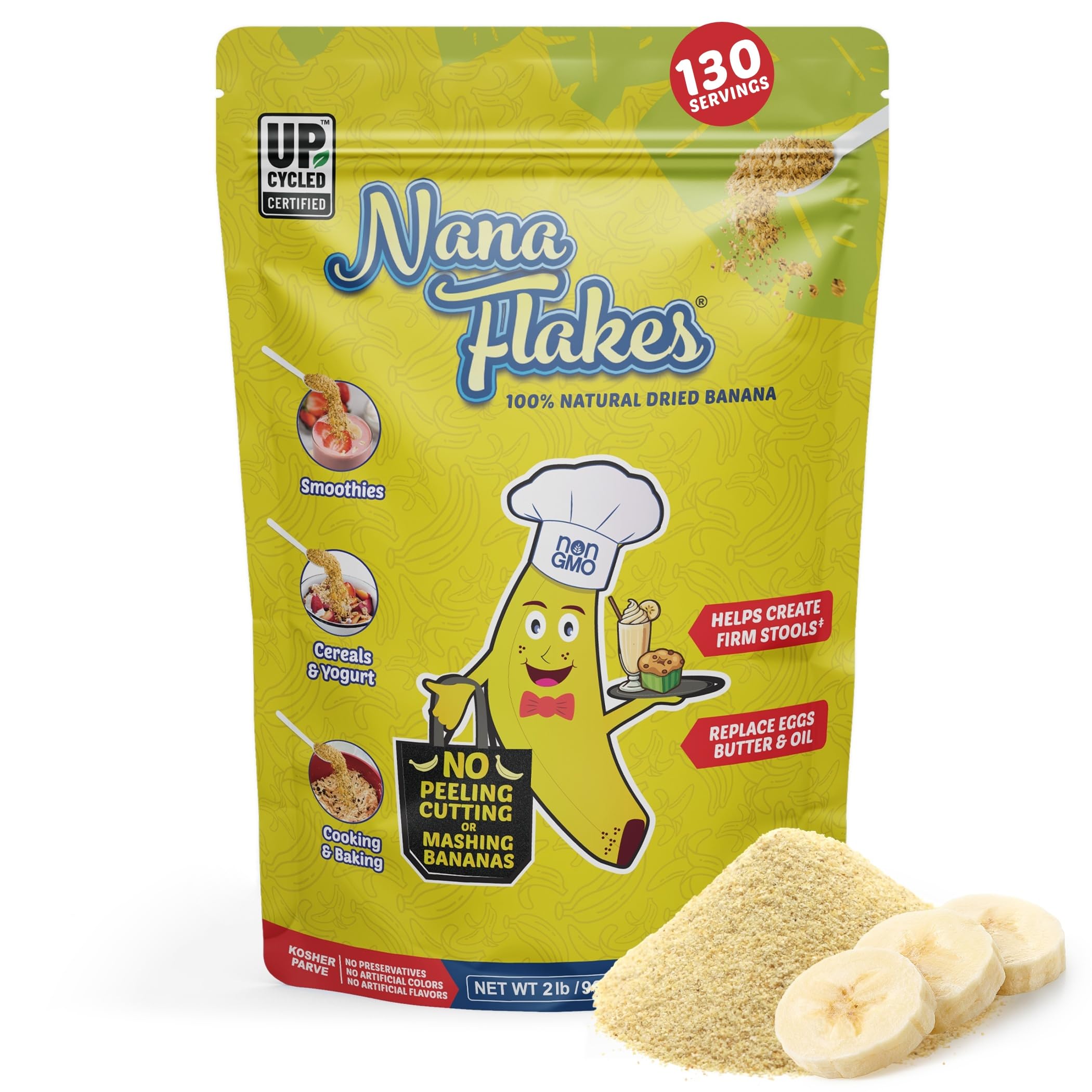 Nutritional Designs Nana Flakes 100% Natural Banana Powder Digestive Support - Source of Potassium & Fiber - Substitute for Eggs Butter or Oil in Baking (2LB Bag) 2 Pounds