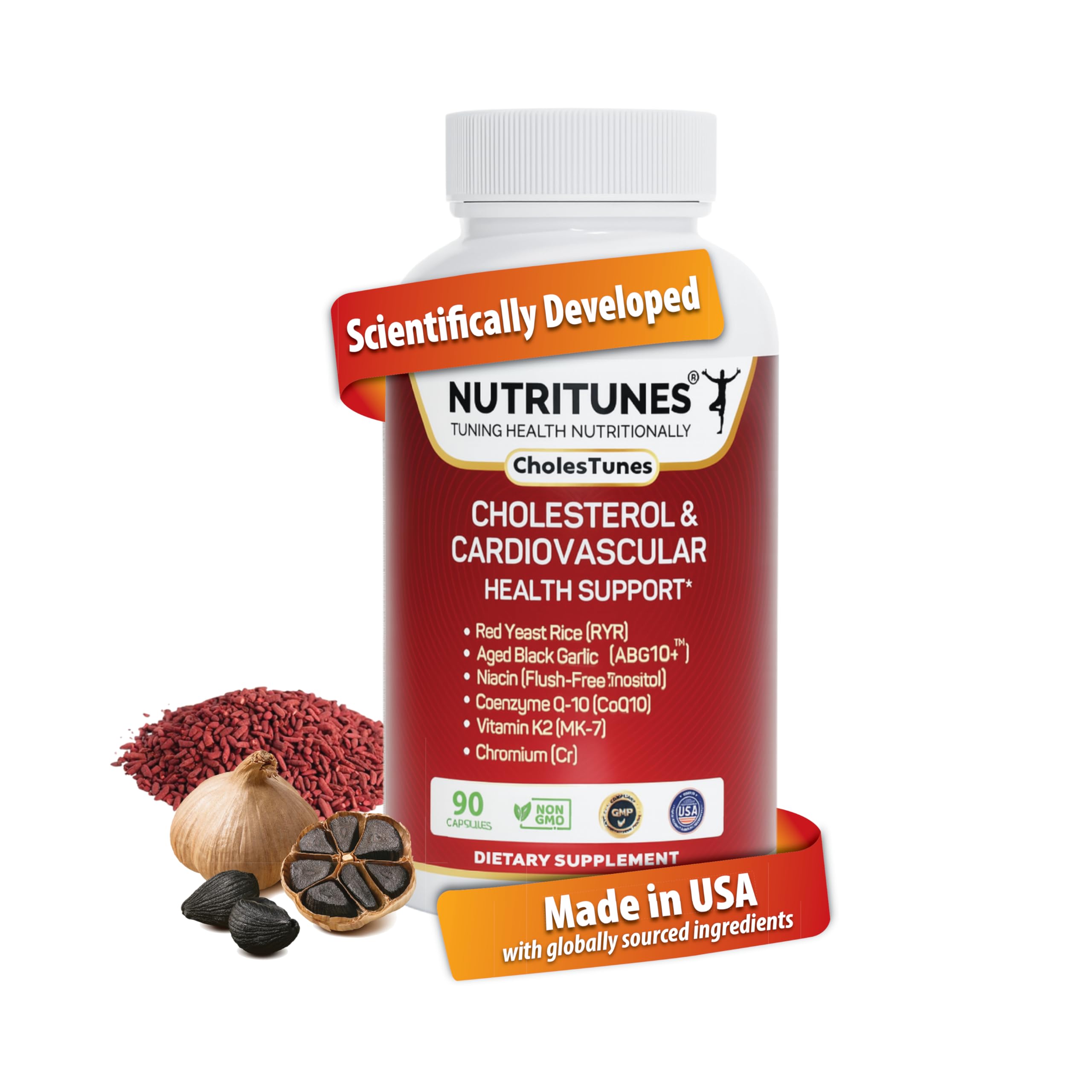 Nutritunes Cholesterol Support Supplement-Red Yeast Rice Aged Black Garlic & CoQ10 Advanced Cardiovascular & Heart Health Support with Niacin Chromium & Vitamin K2 90 CholesTunes Capsules