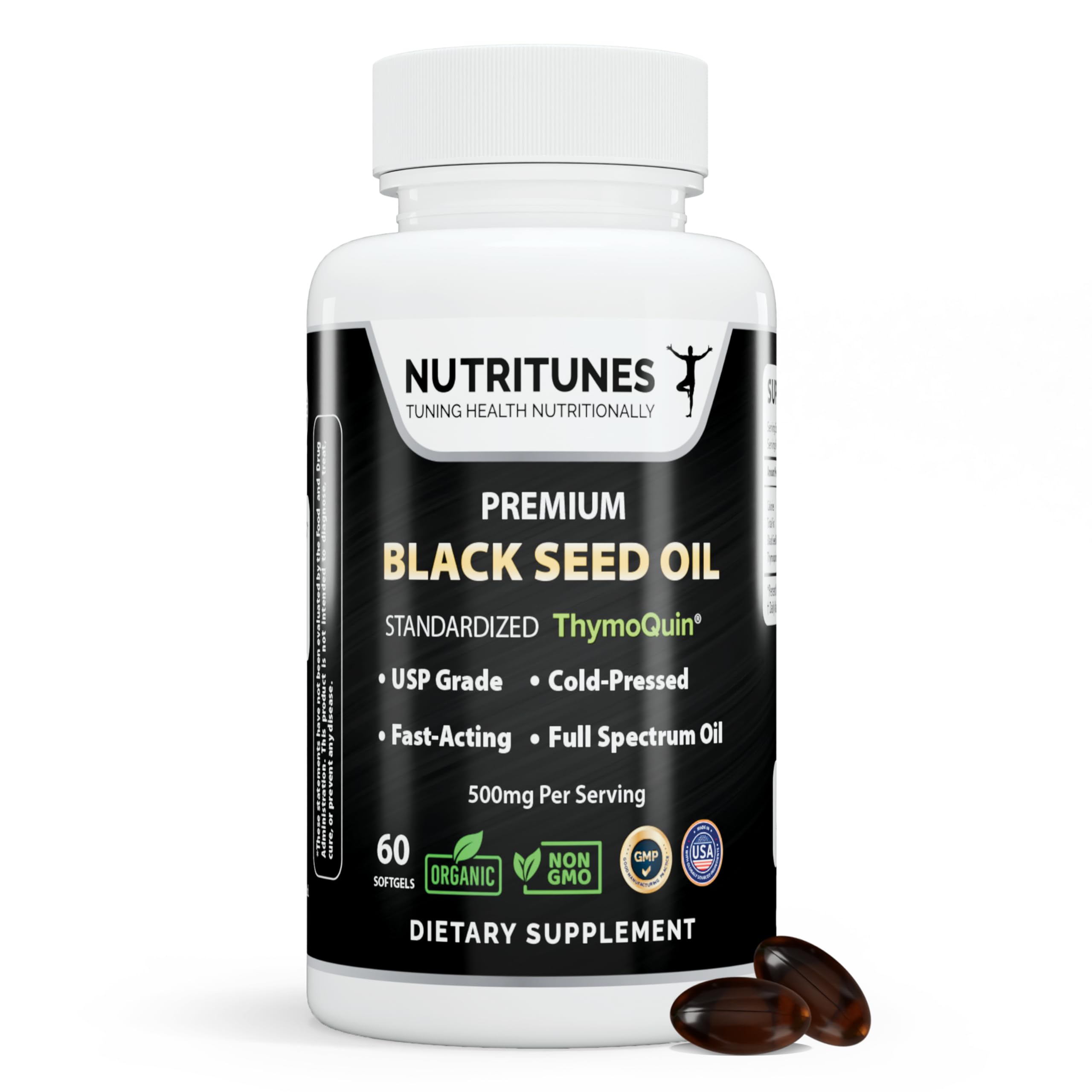 ONE SOFTGEL DAILY – NO MESS, NO TASTE: Enjoy all the benefits of black seed oil in convenient softgel form—odorless, tasteless, and easy to take with meals. No spills, no bitterness—just simple, clean supplementation. GMP-CERTIFIED USA MADE – PREMIUM QUALITY: Manufactured in a GMP-certified facility in the USA with globally sourced, certified organic ingredients. Each batch is tested to maintain purity, consistency, and potency from seed to softgel. NO ADDITIVES, NON-GMO CLEAN LABEL: Made from organic seeds and free from artificial colors, fillers, and preservatives. Non-GMO, gluten-free, soy-free, lactose-free, and dairy-free. A clean, quality-assured formula for daily wellness routines. DESIGNED FOR SUPERIOR BIOAVAILABILITY NUTRIENT RETENTION: Our Premium Black Seed Oil is clinically studied, USP Grade, Patented, Cold-pressed and standardized to 3 thymoquinone—designed to support nutrient retention, oxidative stability, and overall wellness through its full-spectrum composition. STANDARDIZED TO 3 THYMOQUINONE FOR CONSISTENCY: Formulated with a guaranteed 3 thymoquinone content and low free fatty acids ( 1.25 ) to ensure purity, potency, and reliable daily support. Cold-pressed for maximum nutrient retention. CERTIFIED ORGANIC BLACK CUMIN SEED OIL – 500MG PER SOFTGEL: Each softgel delivers 500 mg of full-spectrum certified organic Black Cumin Seed Oil (Nigella sativa), standardized to 3 thymoquinone using patented ThymoQuin—the only USP-grade black seed oil on the market.