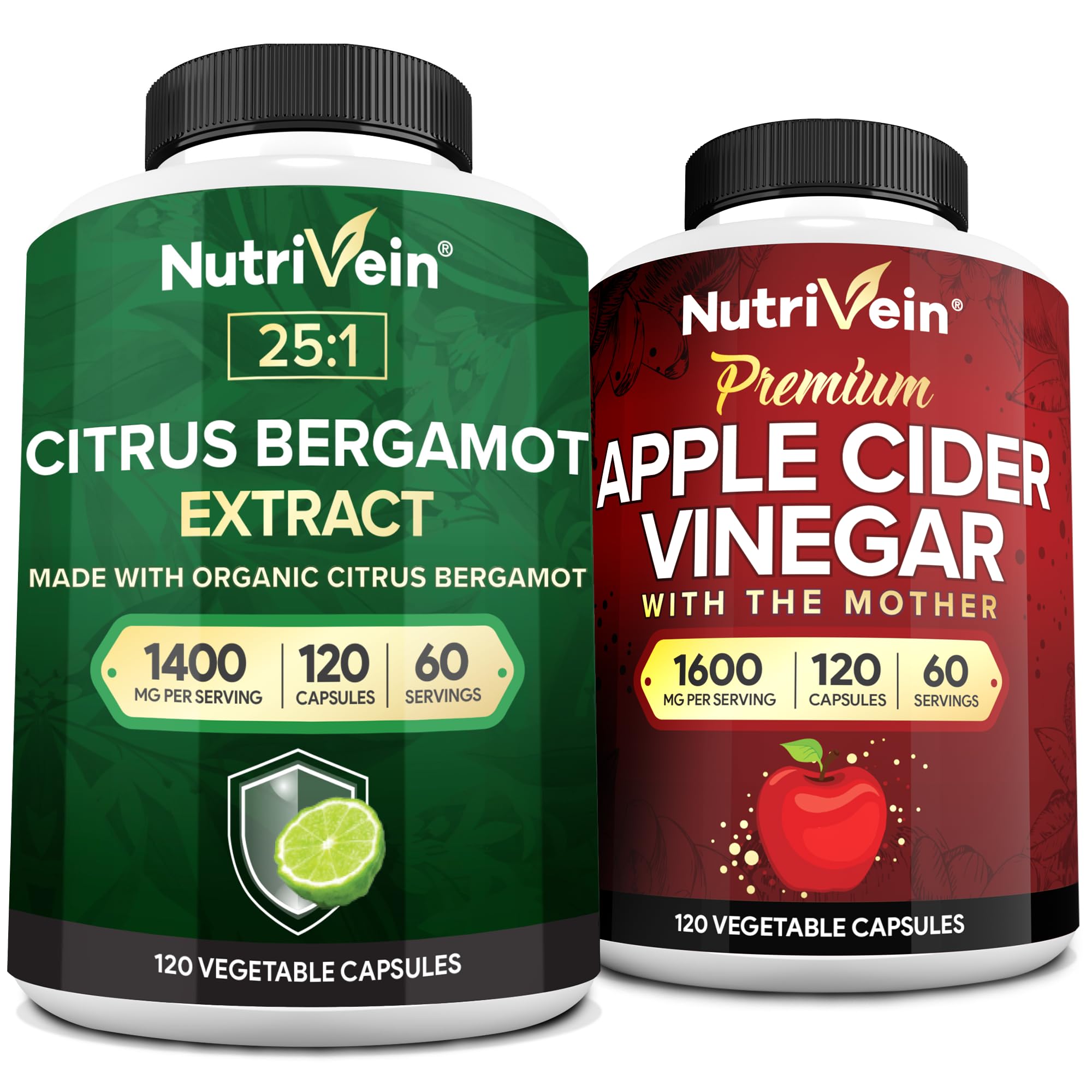 Nutrivein Premium Citrus Bergamot & Apple Cider Vinegar Supplements Bundle: Apple Cider Vinegar Capsules & 25:1 Citrus Bergamot Supplement for Vitality Digestion & Circulatory Wellness