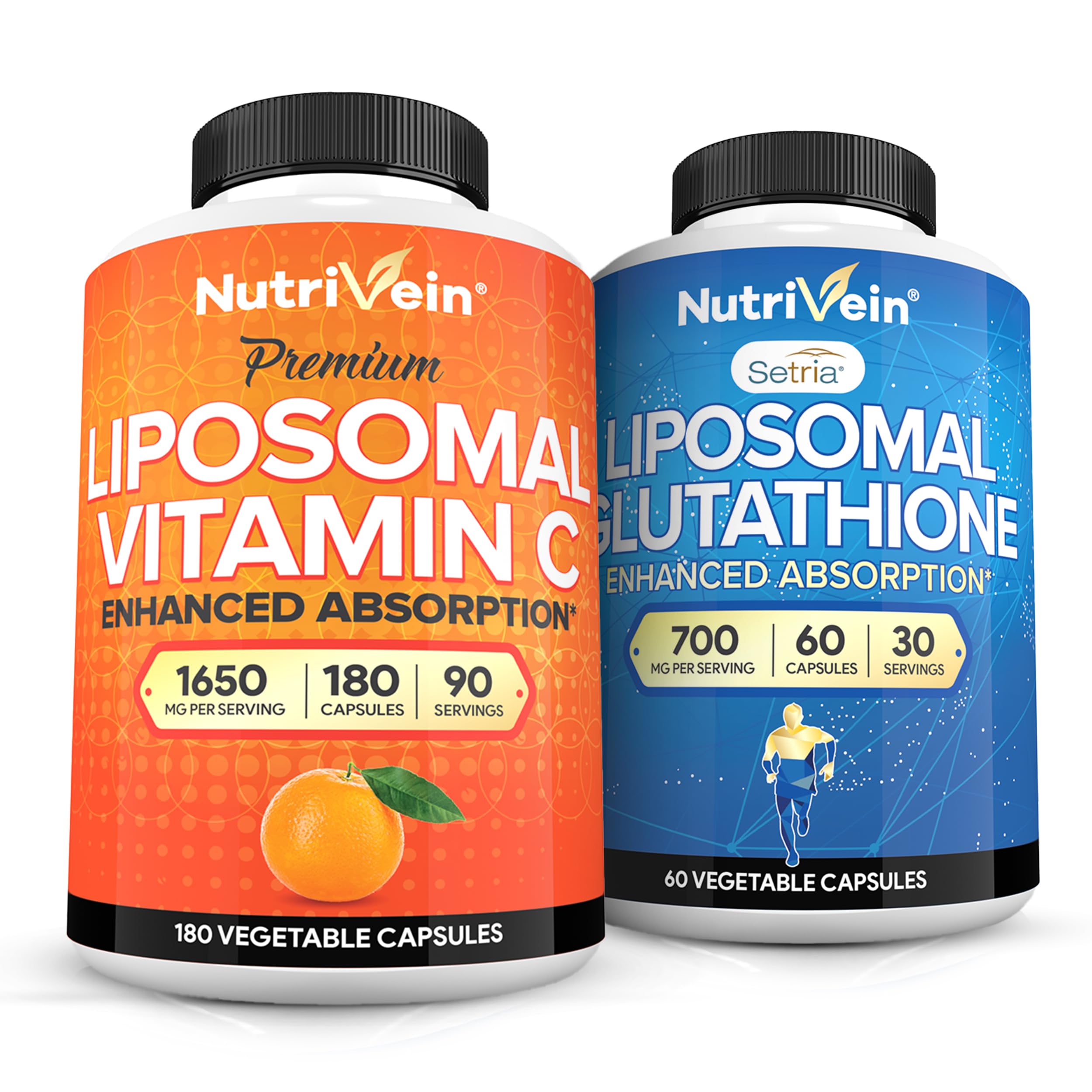 Nutrivein Premium Liposomal Vitamin C 1650mg & Liposomal Glutathione Bundle - High Absorption Ascorbic Acid Plus Master Antioxidant & Liver Cleanse - Non-GMO, Vegan/Vegetarian - 180 + 60 Capsules