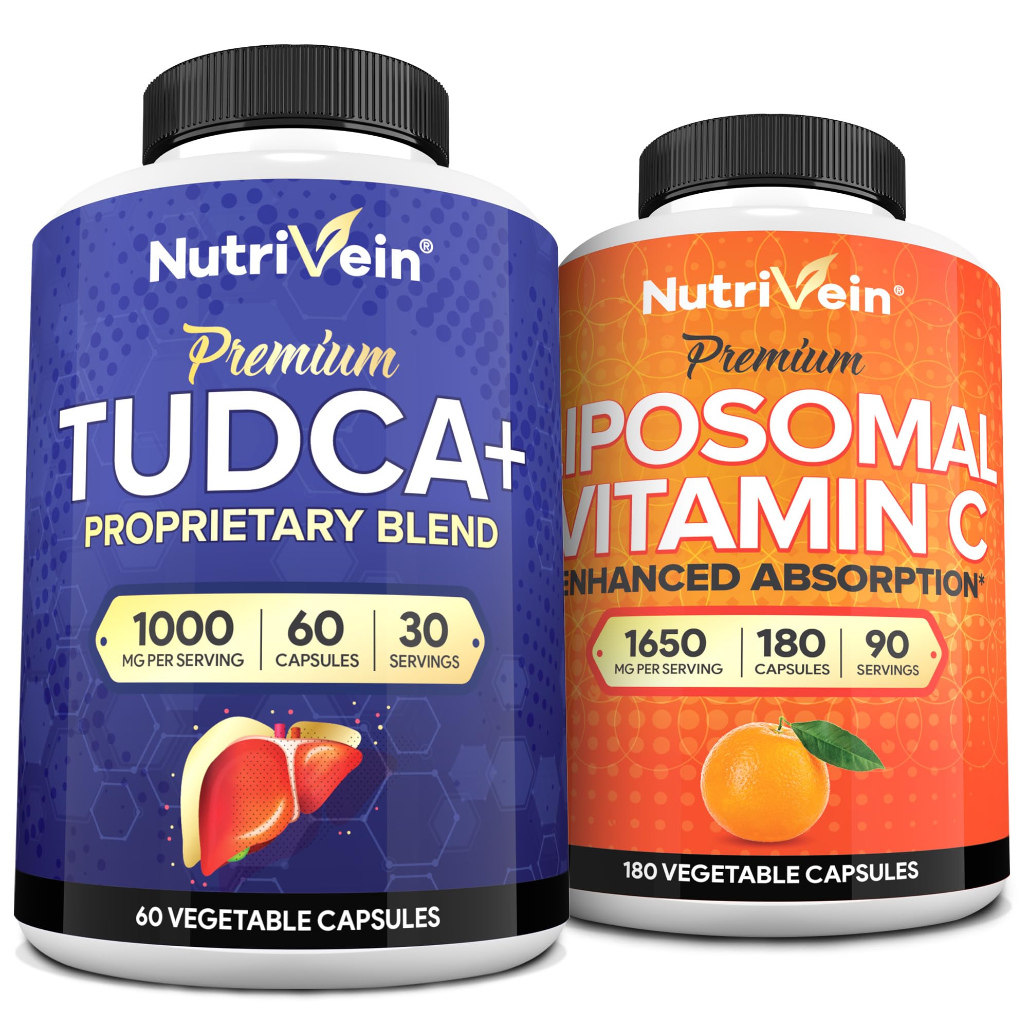 Nutrivein Premium TUDCA Supplement & Vitamin C Capsules Bundle: High-Absorption TUDCA+ & Liposomal Vitamin C Supplement Pair for Whole-Body Wellness, Detox, & Vitality